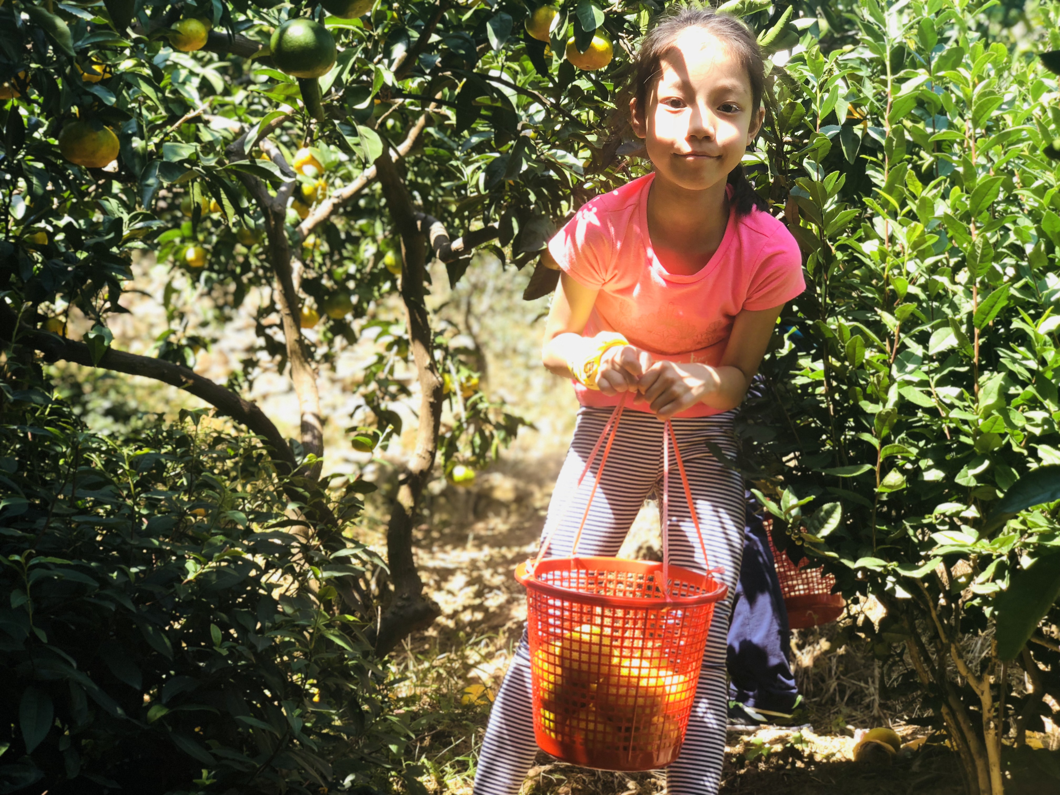 自家的橘子做好标记,小朋友用帽子遮挡!哈哈哈哈~
