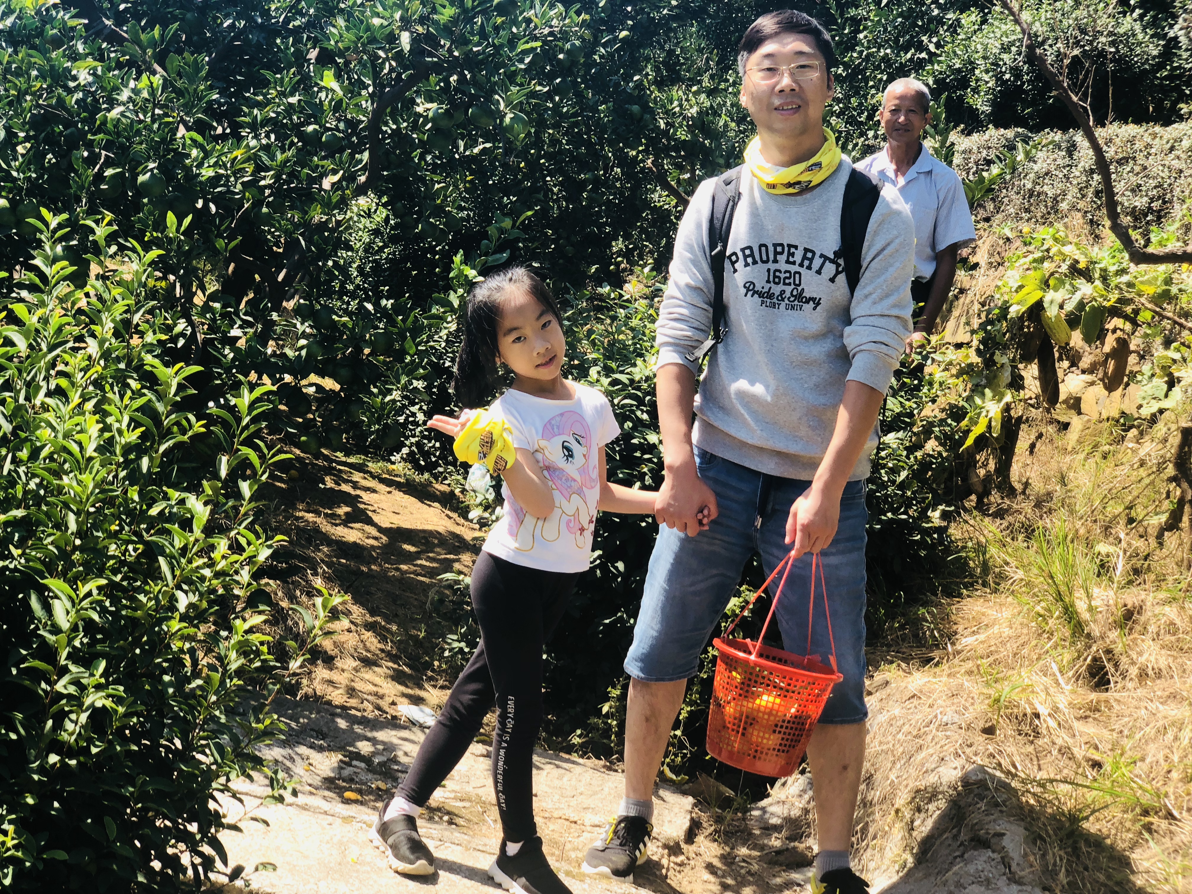 摘完橘子,准备回农家吃饭!回懵一笑,也是很可爱的~~~