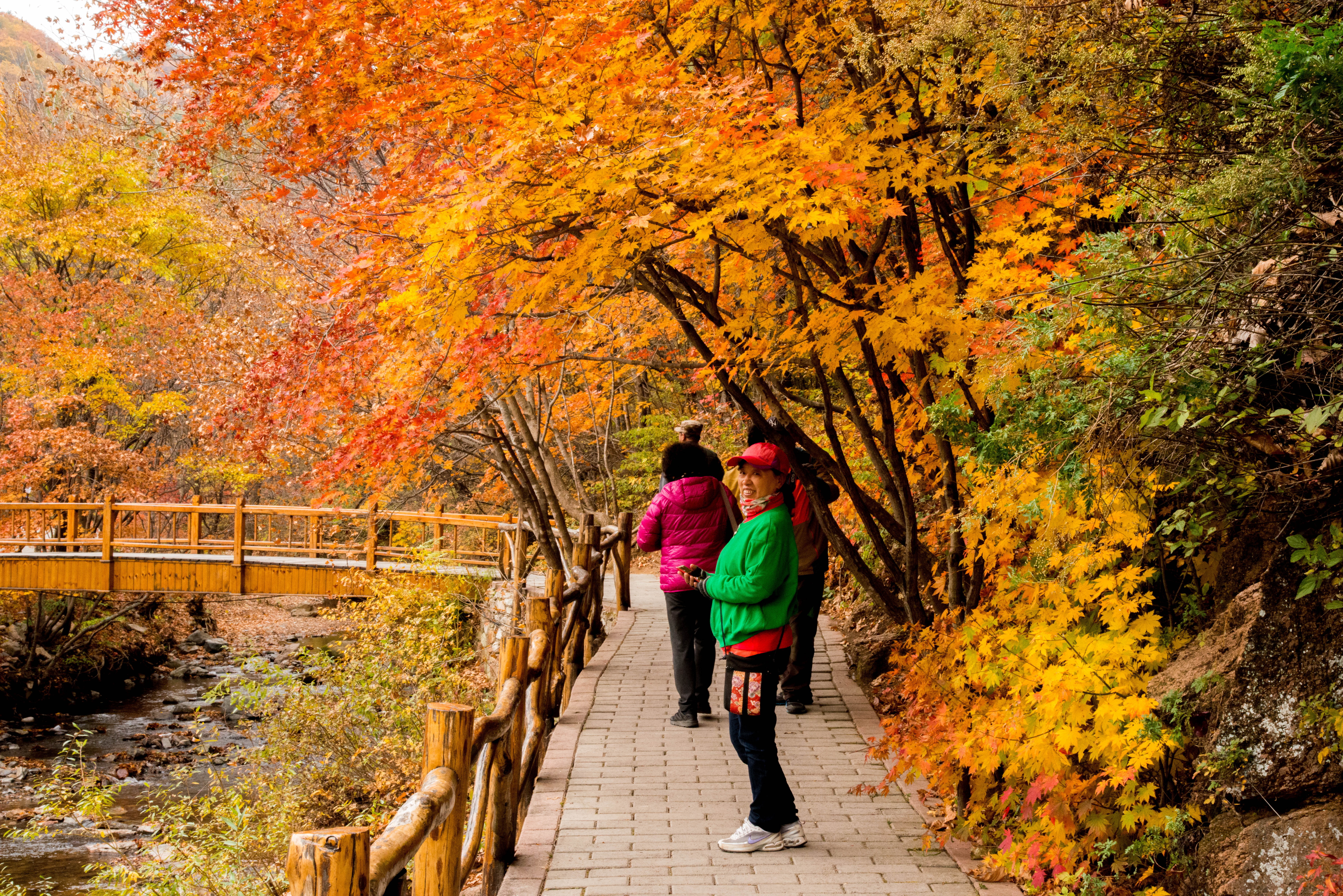 2016年10月7日曾经去过本溪赏红叶,那里的女人们真爱美!漫山枫叶景色更是美!本溪给我留下了很深印象,当时由于天气原因有些景区没能去。时隔两年同样时节再去本溪赏叶、拍叶。