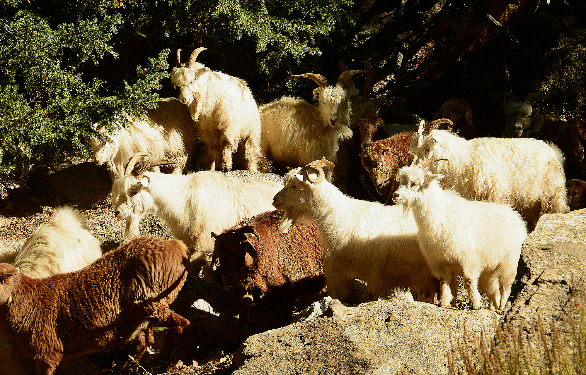 景区里时不时有转场的羊儿,牛儿经过。规模有大有小,很是热闹。