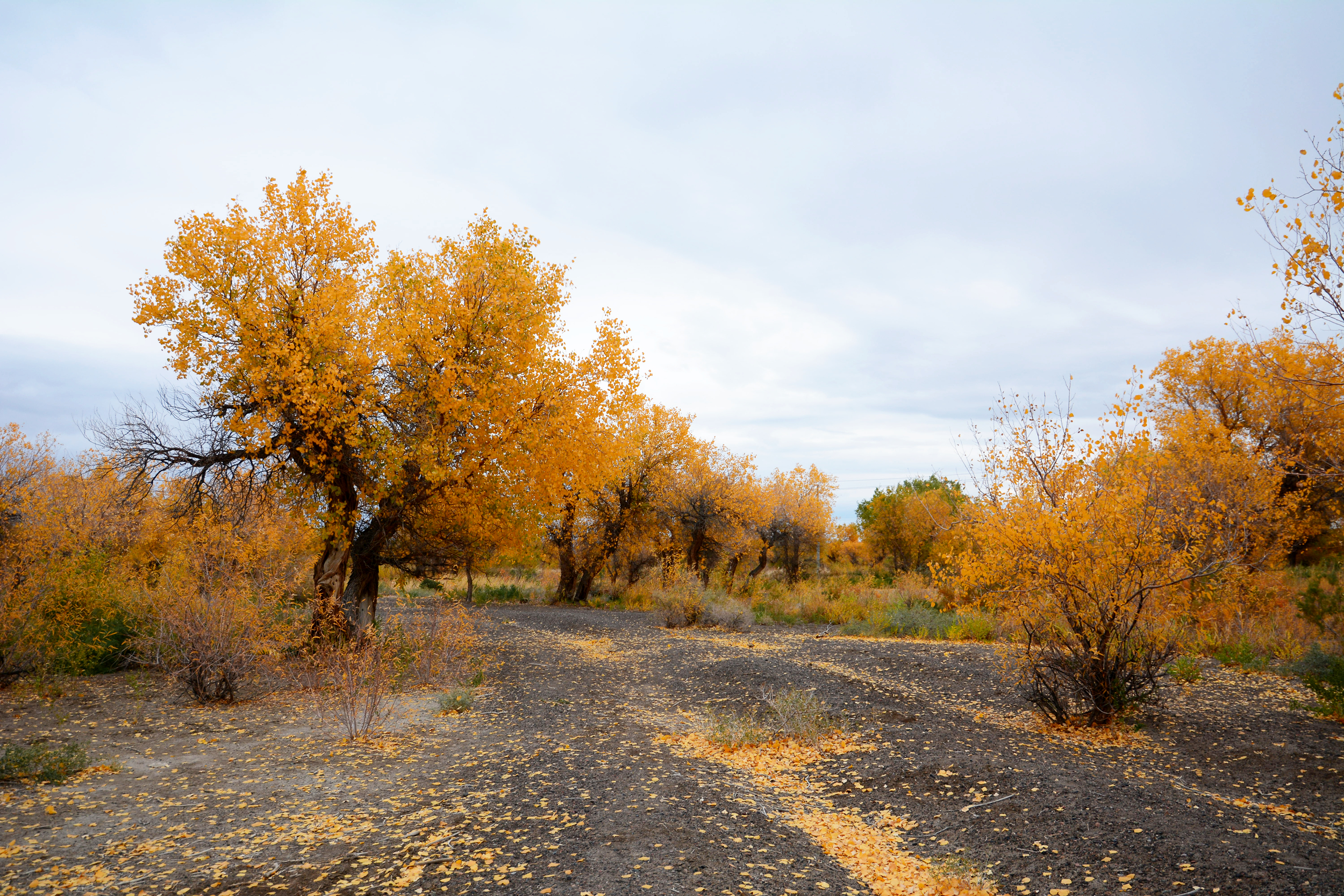 今天要去独山子大峡谷安集海大峡谷。经过乌尔禾胡杨林时顺道拍了一些。天气有时有雨。