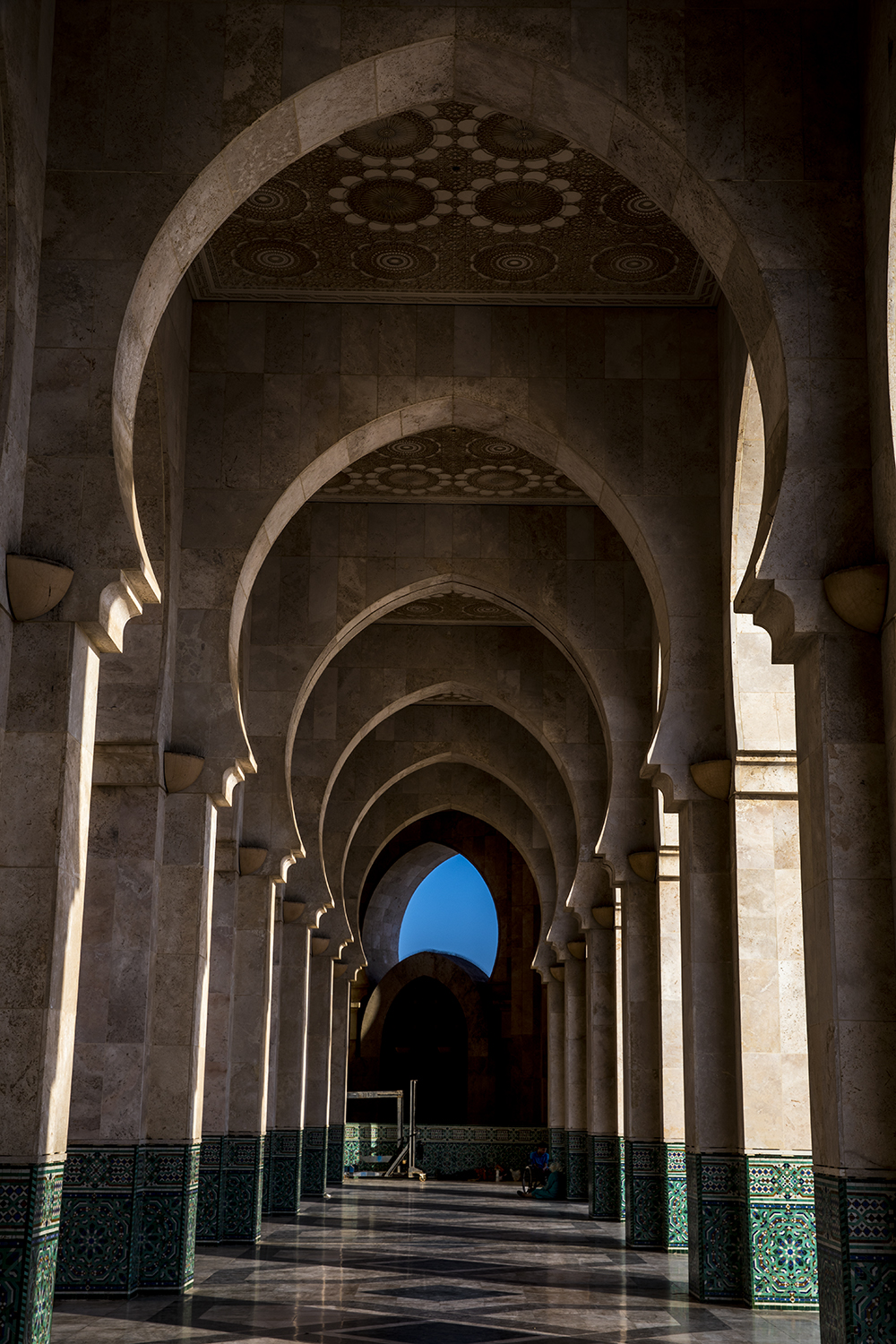 D8站卡萨布兰卡。驱车前往卡萨布兰卡途中,我们参观了舍拉废墟,那是摩洛哥梅里尼德王朝时期的皇家陵寝,在1775年的一场大地震中成为废墟。废墟上古罗马时期的台地,凯旋门,元老院,论坛,法院,公共浴池的建筑群依稀可辨,清真宣礼塔,王妃墓碑,仿生池等基本保持原样。最后在日落时分我们来到现代宗教建筑奇迹之一的哈桑二世清真寺。这个一半建在海上的清真寺据说是以纪念阿拉伯人的祖先自海上来到这非洲大陆,她可以同时容纳10万人祈祷。是世界第三大清真寺。日落时分清真寺的景观灯慢慢亮起,夜幕下的清真寺绚烂辉煌。整个行程圆满结束。