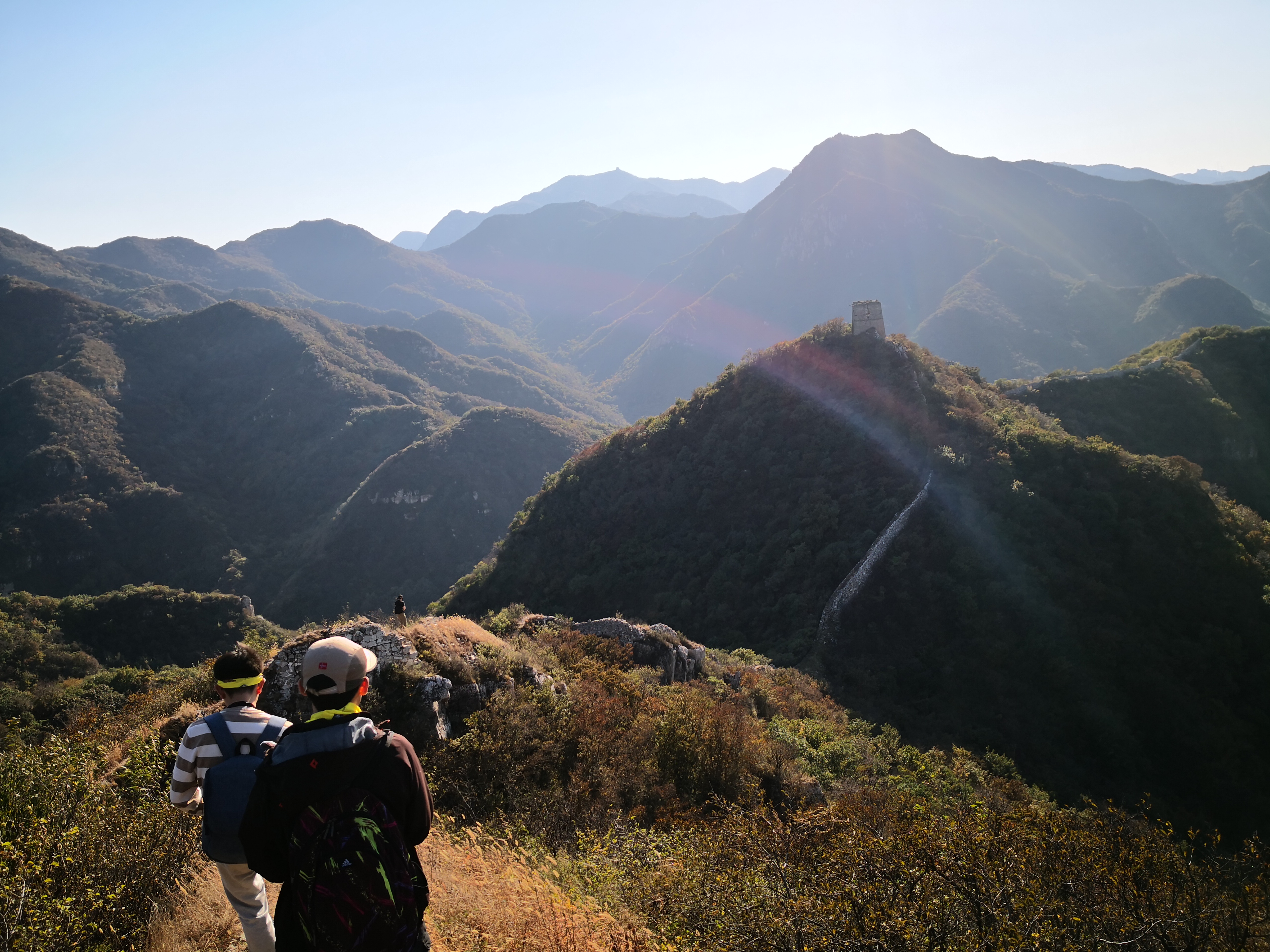 在最开始时就分开了两队,我带头队走完了全程。另一个领队彩虹带后队中途下了长城。