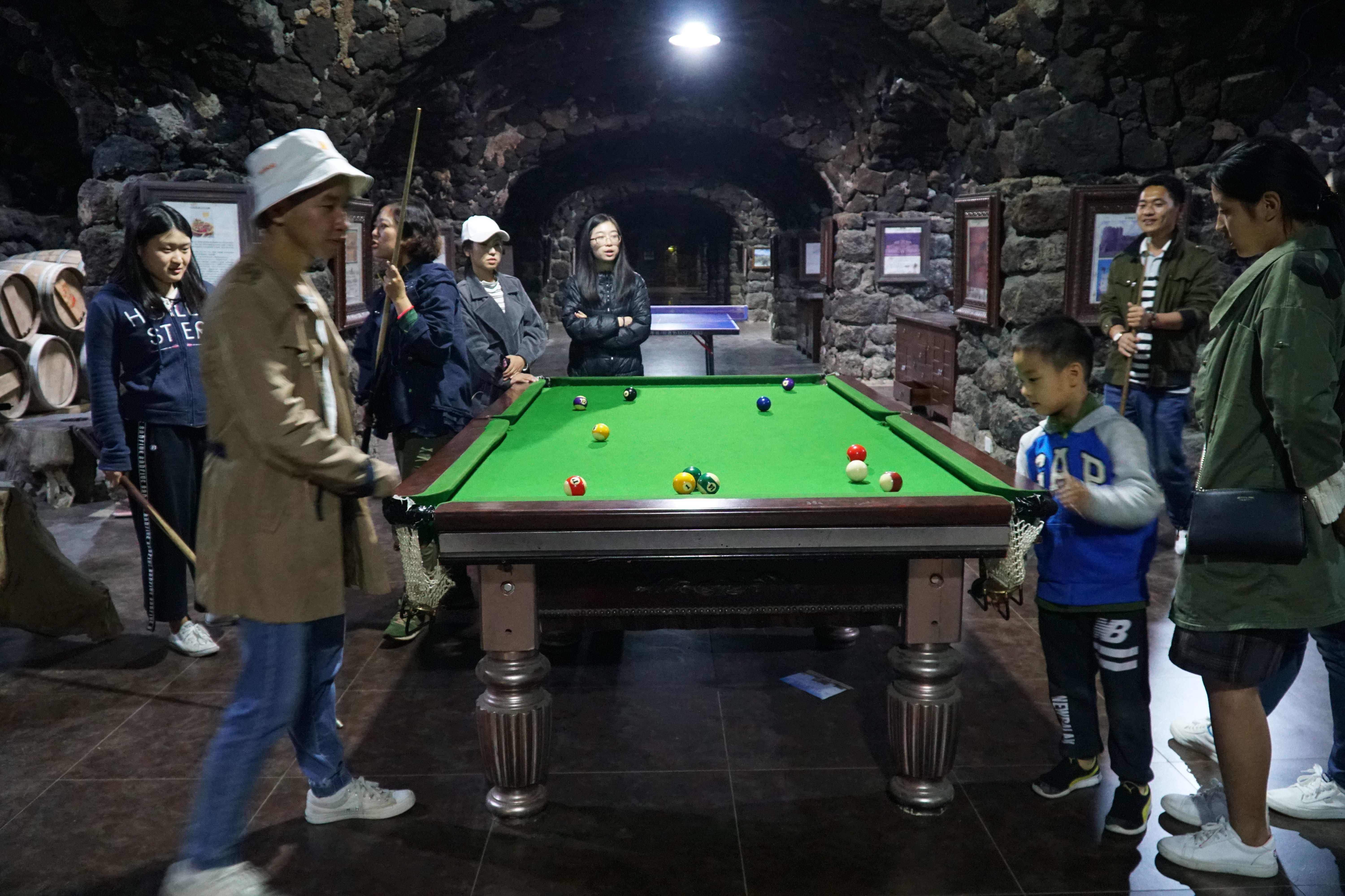有在城堡中住宿,晚上吃过了饭来酒窖参观,发现酒窖中,还提供台球,大家玩的不亦乐乎