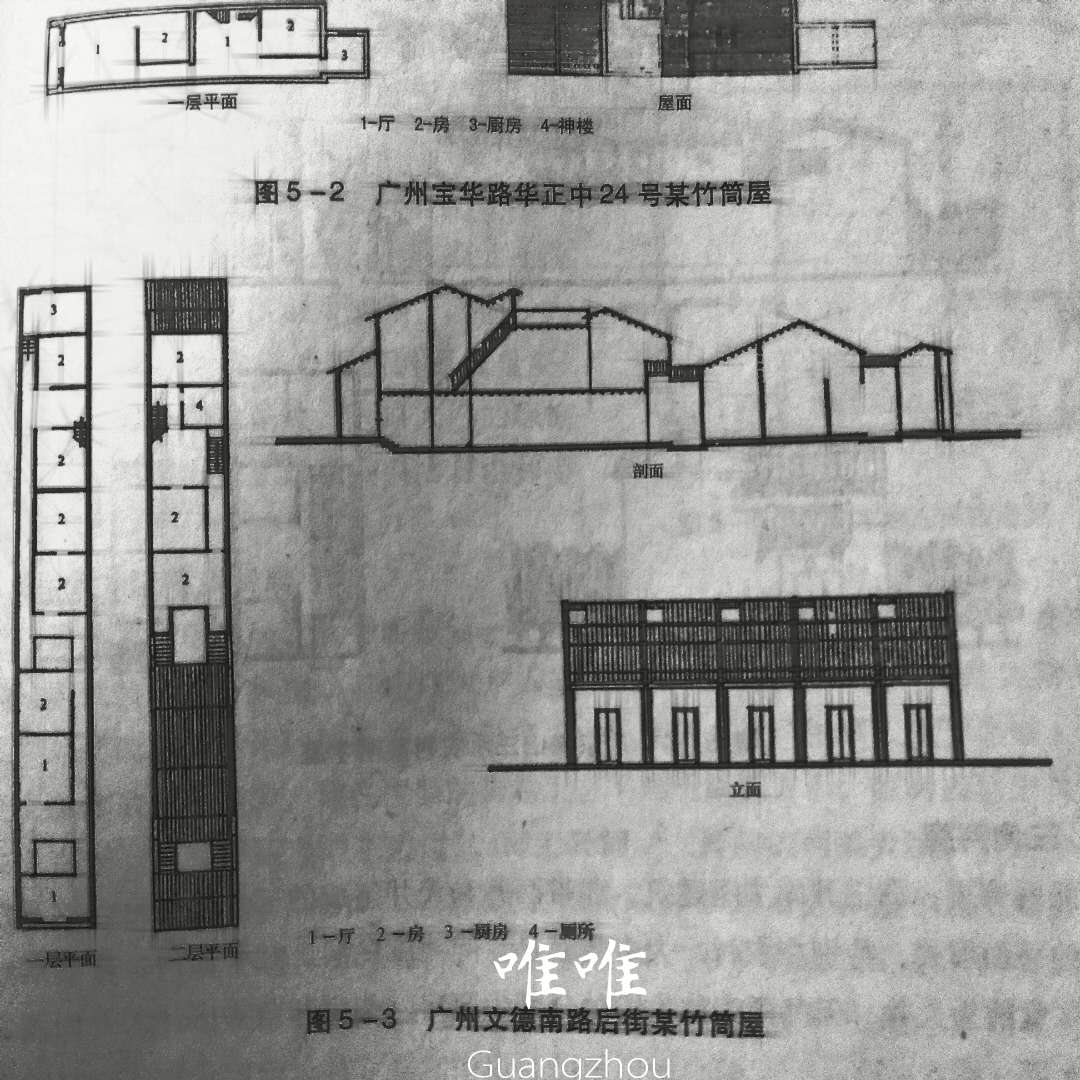 那为什么叫竹筒屋呢?因为平面布局犹如一节节的竹子,故称之为“竹筒屋”。现在广州的竹筒基本的状态是危楼作为历史建筑保护群保护起来,有人居住的是一些当地的老广,不喜欢被别人打扰。一般都无法进去里面参观。在众多资料里找到这张建筑平面图给大家感受一下犹如一节节的竹子的"竹筒房"。