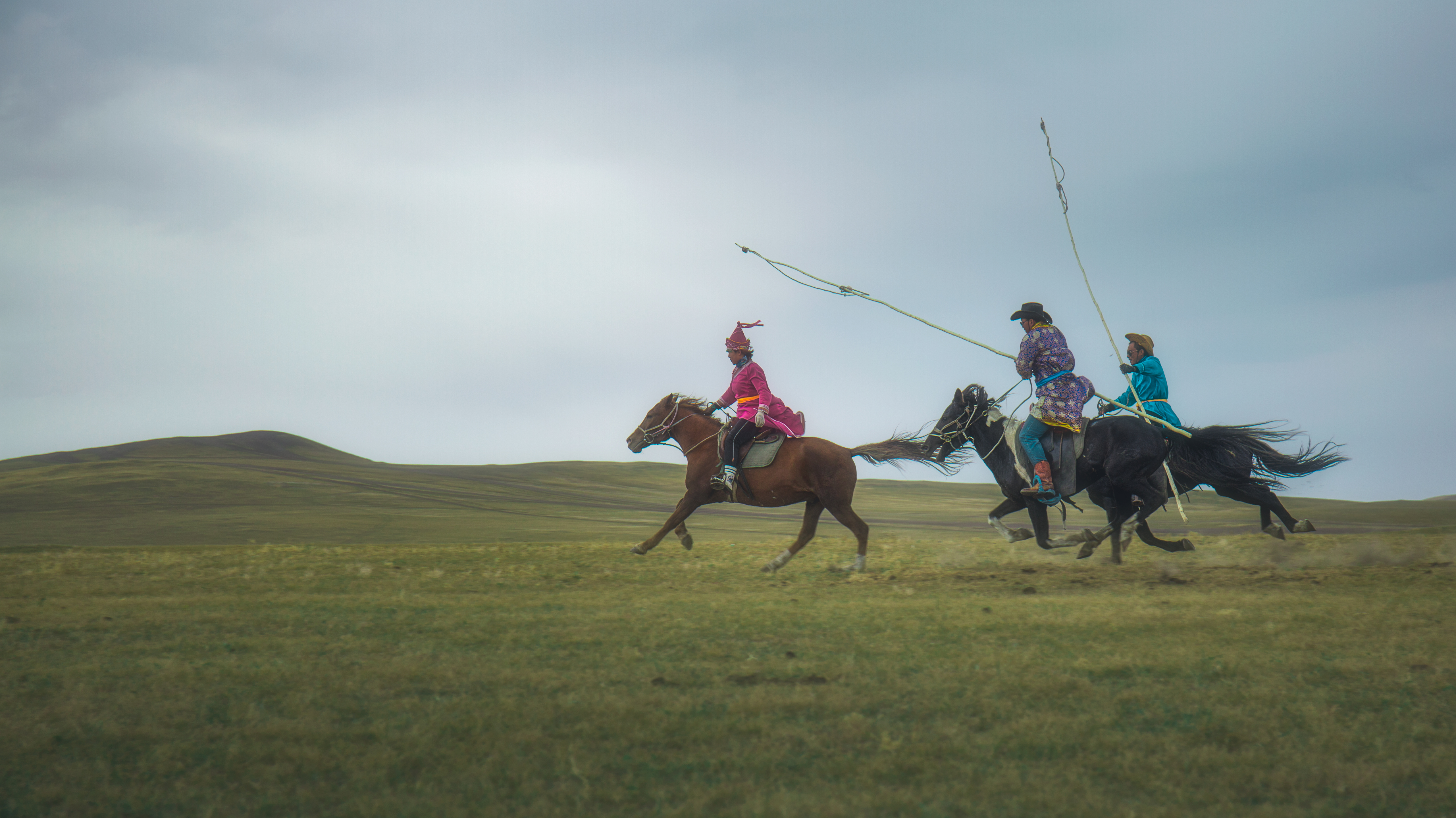 套马是一项勇敢者的活动,当牧马人要换乘马或马群打印记、剪马鬃时就需要套马,特别是后两项更是牧马人表现自己的勇敢和智慧的时机。他们骑在杆子马上,在飞奔中选准机会,把套马杆伸向被套马匹的头部,然后把杆绳套在马脖子上。能套住马的后耳根的人则是技术最高超的。套马的场面既惊险又精彩,牧马从竟展绝技,围观的人欢呼喝彩,热闹非凡