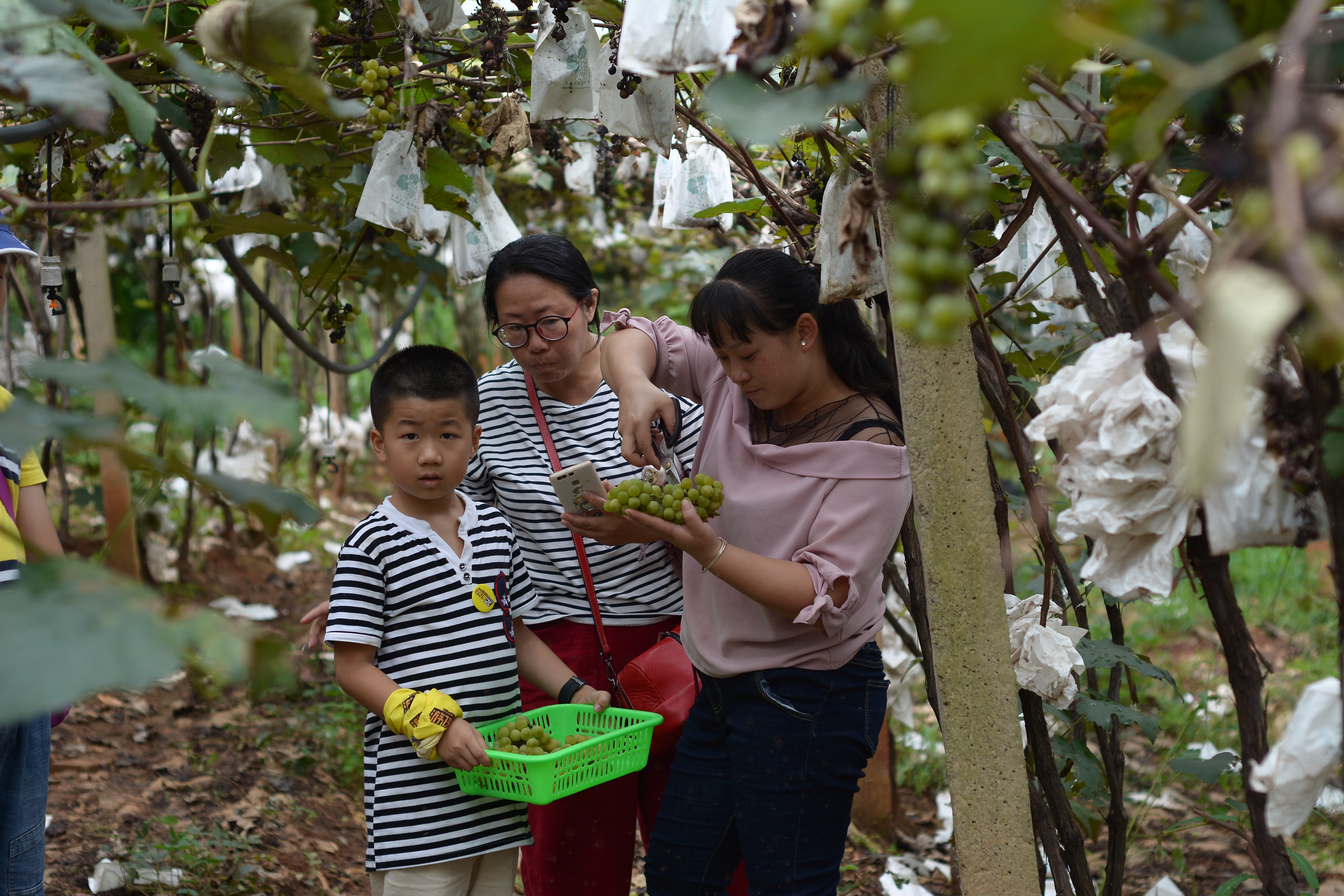 在车上我就向大家介绍了弥勒的葡萄,一下车大家就迫不及待冲进果园,亲手采摘起来了。
