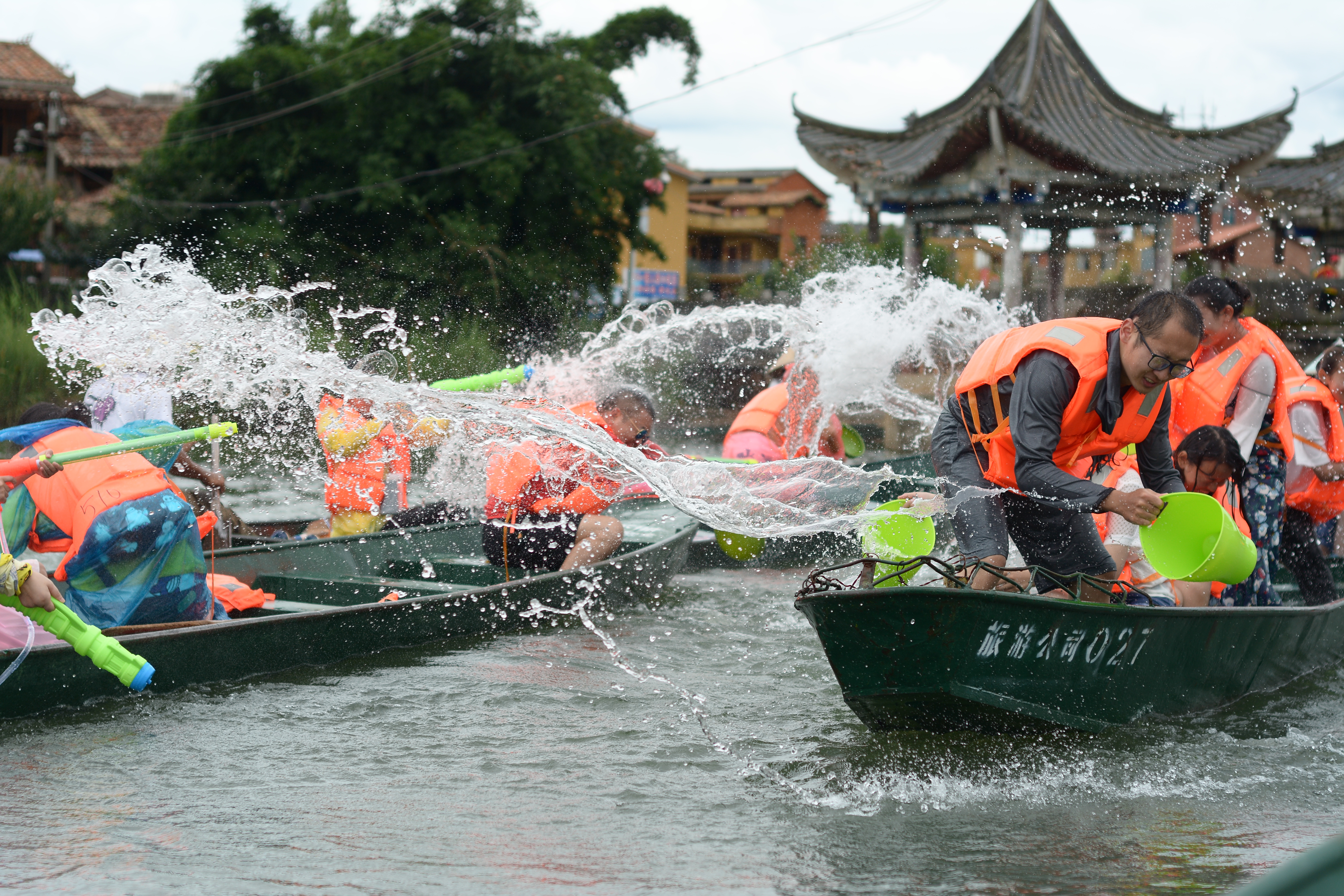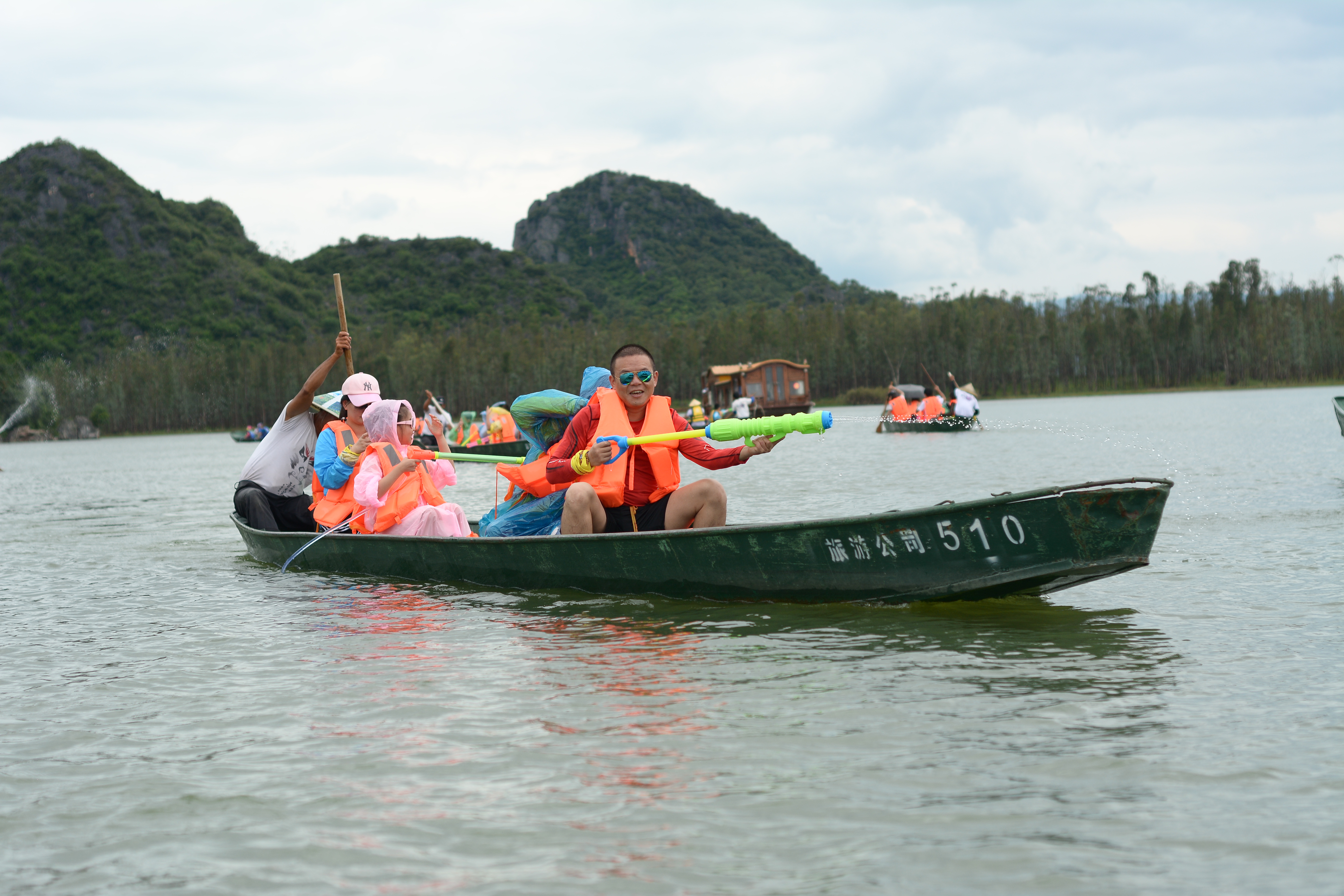 暑假孩子们来到普者黑,还有另外一个非常好玩儿的,那就是游船打水仗。