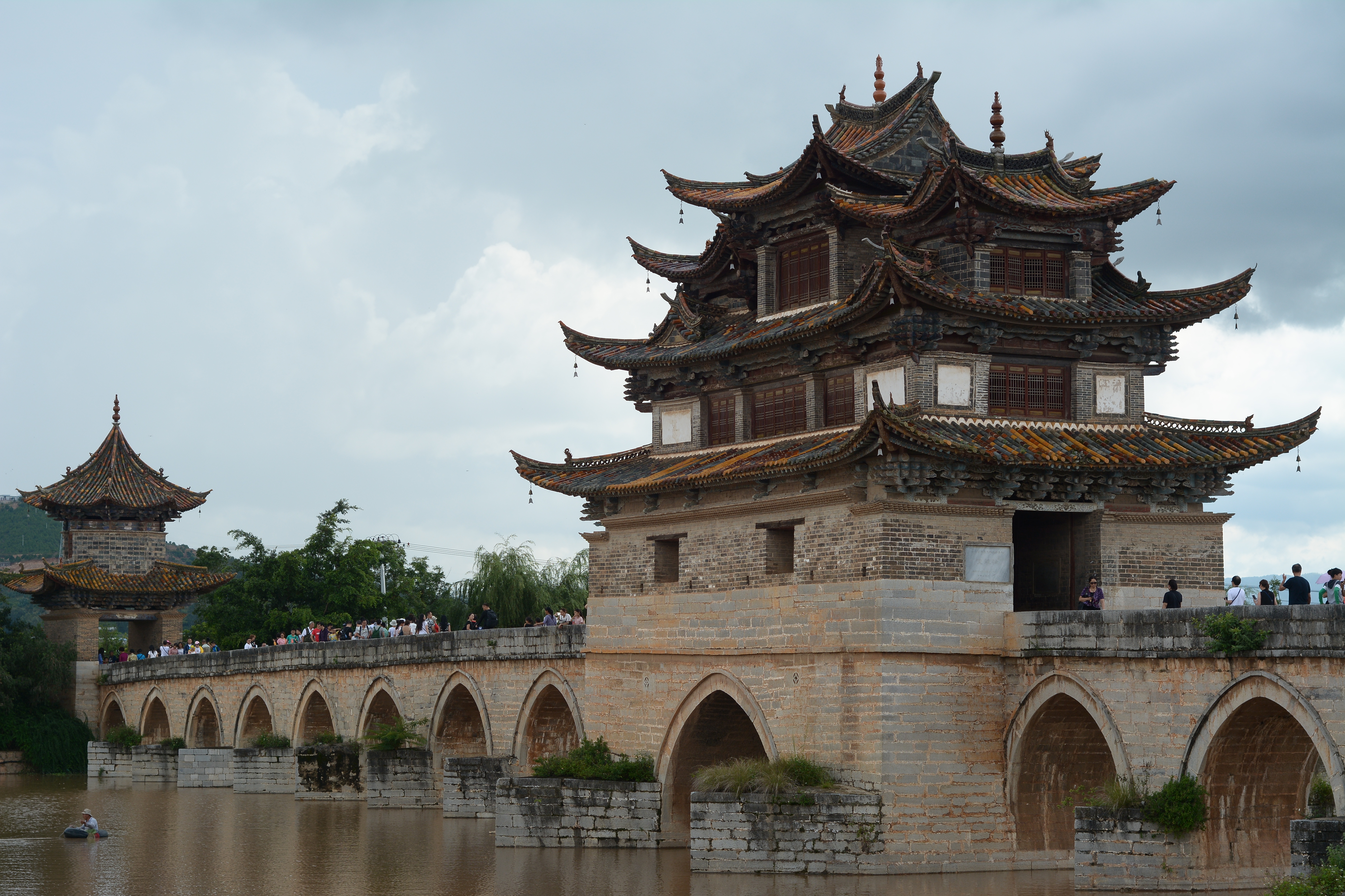 它坐落于建水古城城西5里处,横跨泸江与塌冲河交汇之水面上,已列入中国造桥史册。清乾隆年间先建三孔,道光年间又建十四孔与之相连,因此俗称 "十七孔桥"。桥身用巨石砌成,全长148.26米,宽3米,远看犹如一艘楼船,近观似长虹卧波。它造型奇巧,是我国现存的优秀古桥之一。2006年05月25日,作为清代古建筑,被国务院批准列入第六批全国重点文物保护单位名单。