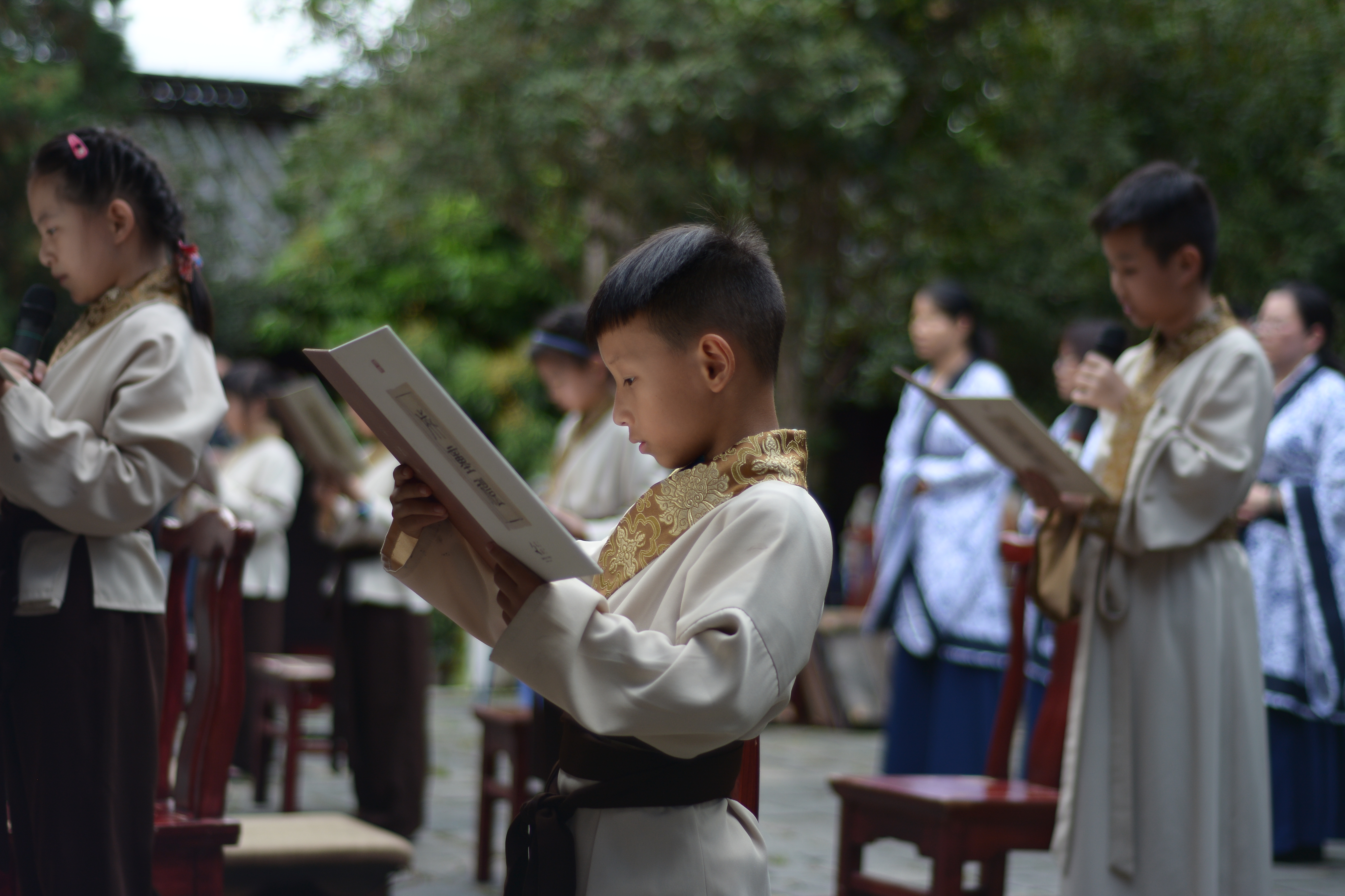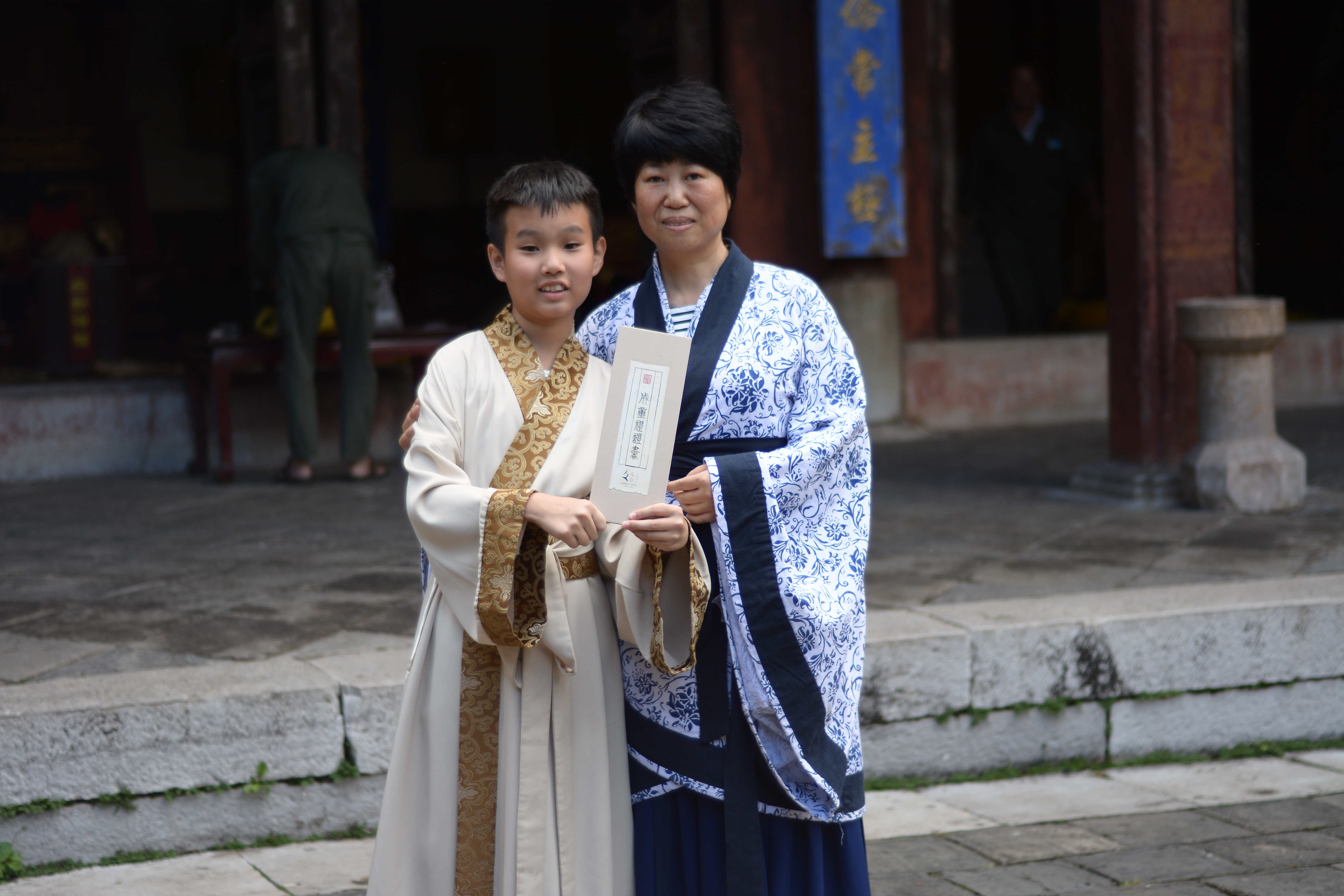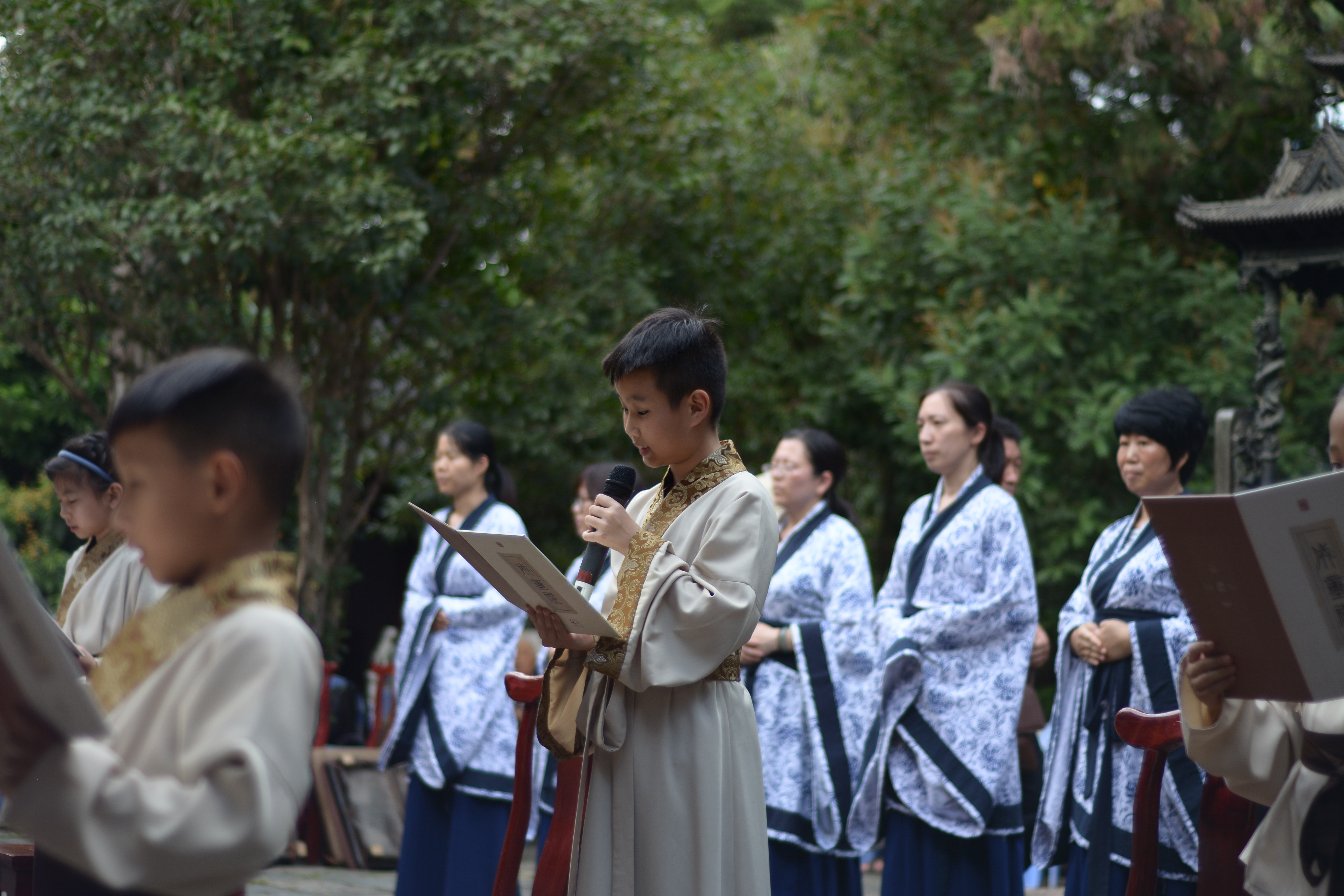 孩子们身穿古代学童服装,跟着长者一起参拜孔圣人,聆听智者教诲,学会孝敬父母,从下立下志愿。在庄严肃穆的氛围中,让孩子们接受博大精深的传统文化的洗礼。别看大家平时调皮捣蛋,但是这会儿都格外用心和专注。