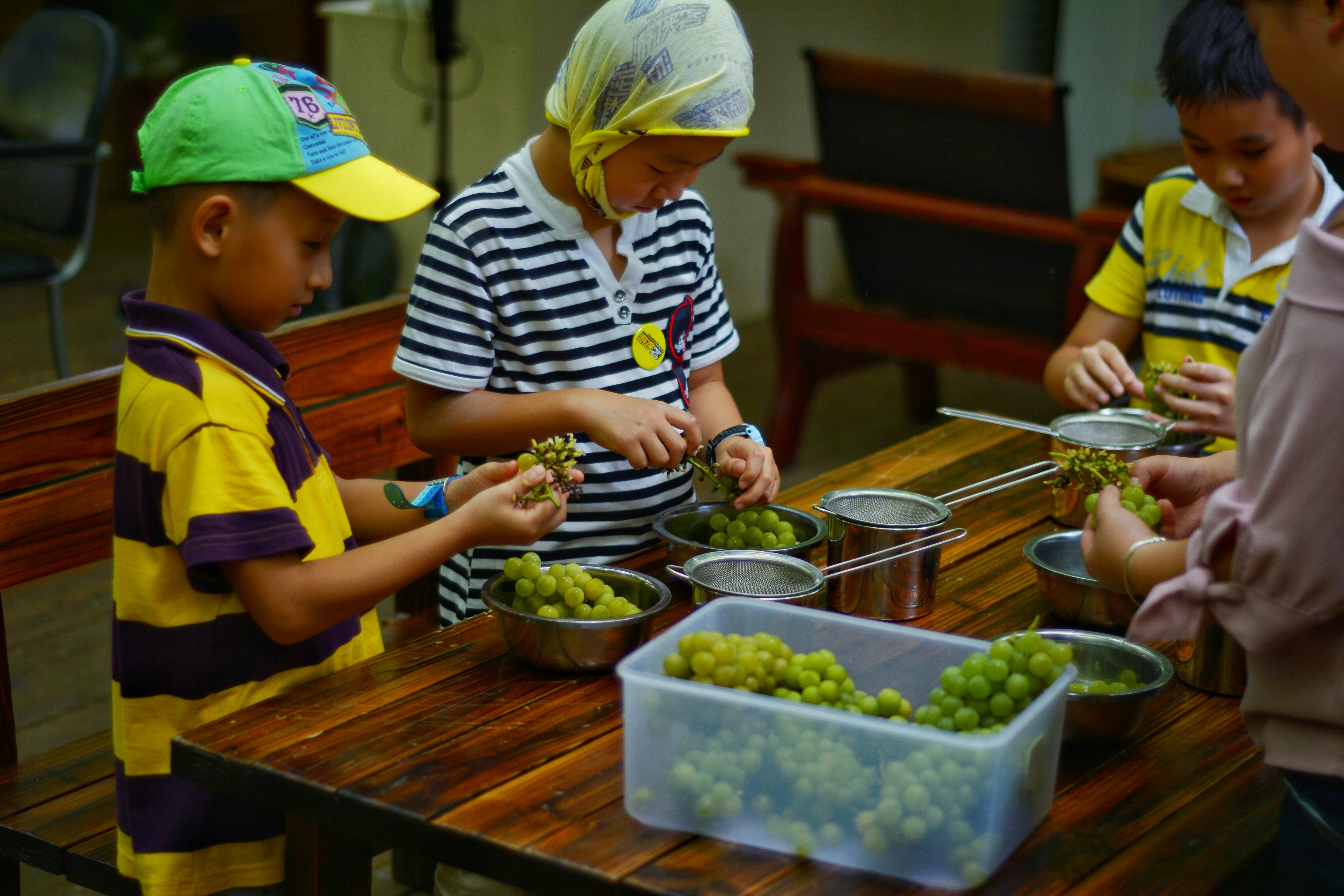 在普者黑我们还给孩子们安排了丰富的活动:彝族篝火晚会、浑水摸鱼体验、打糍粑磨豆浆、坐马车逛村子等... ... 当然除了好玩的,还有好吃的——荷花宴。不过想吃到美食可是需要付出辛苦劳动的。