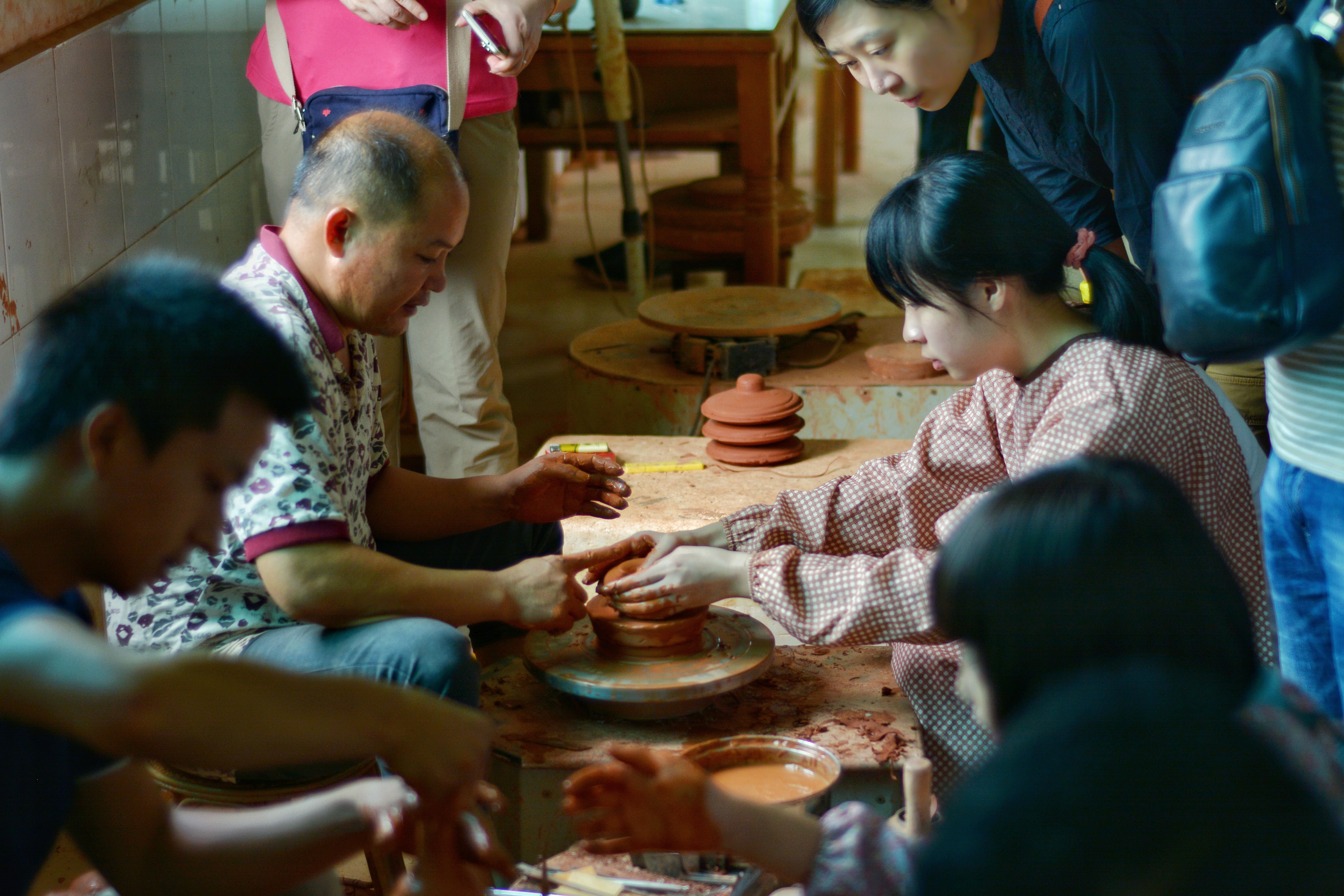 品尝美味以后,该让孩子们活动活动,干点正事,那就是亲手制陶。