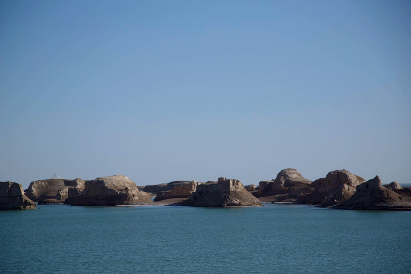 因为吉乃尔湖面抬升,逐步淹没北缘的雅丹群,形成了独一无二的水上雅丹,就像一望无际的荒漠中凭空而出了一片”汪洋“。