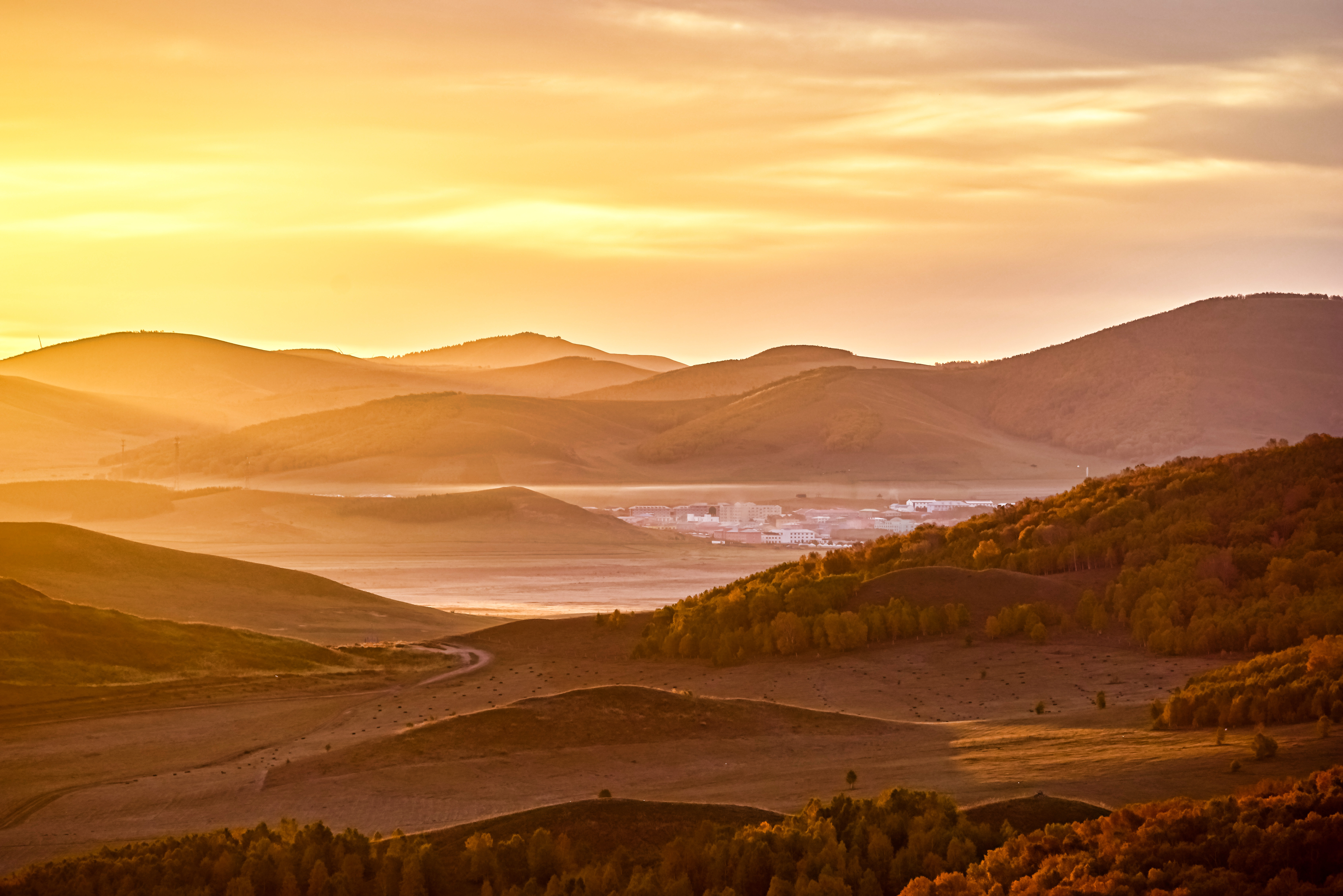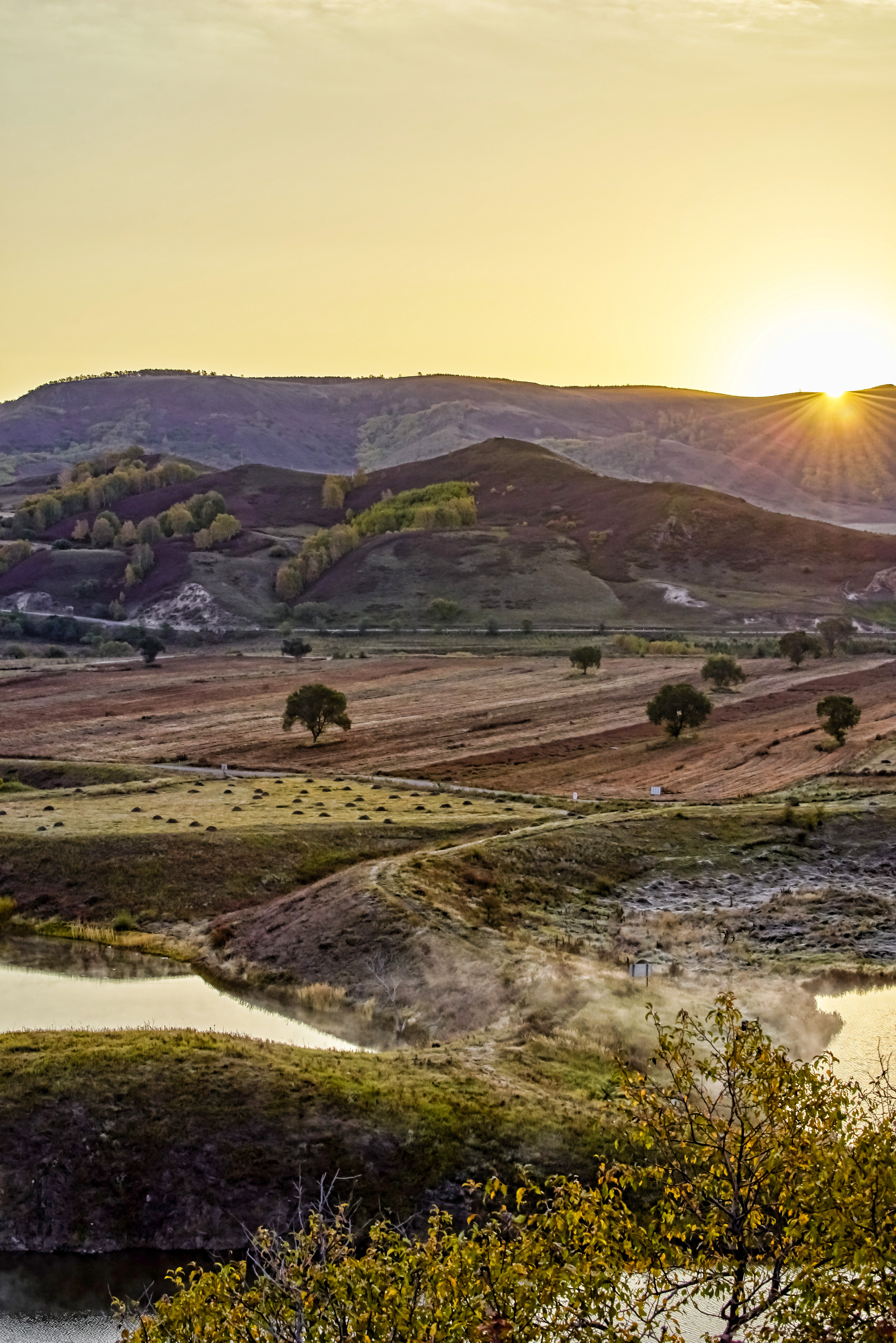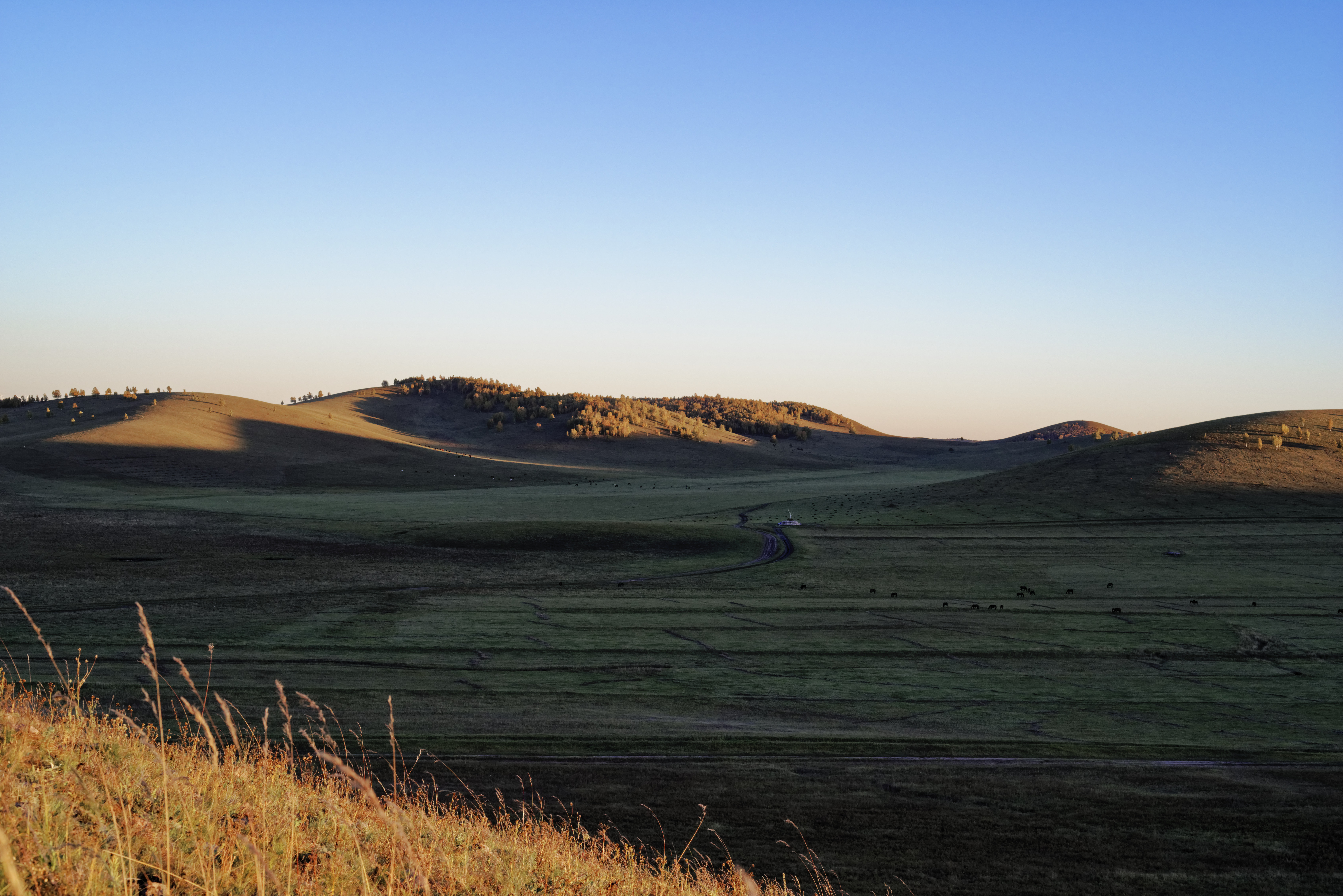 傍晚到达乌兰布统红山军马场,后山草原日落,天气“太好了”,无云!