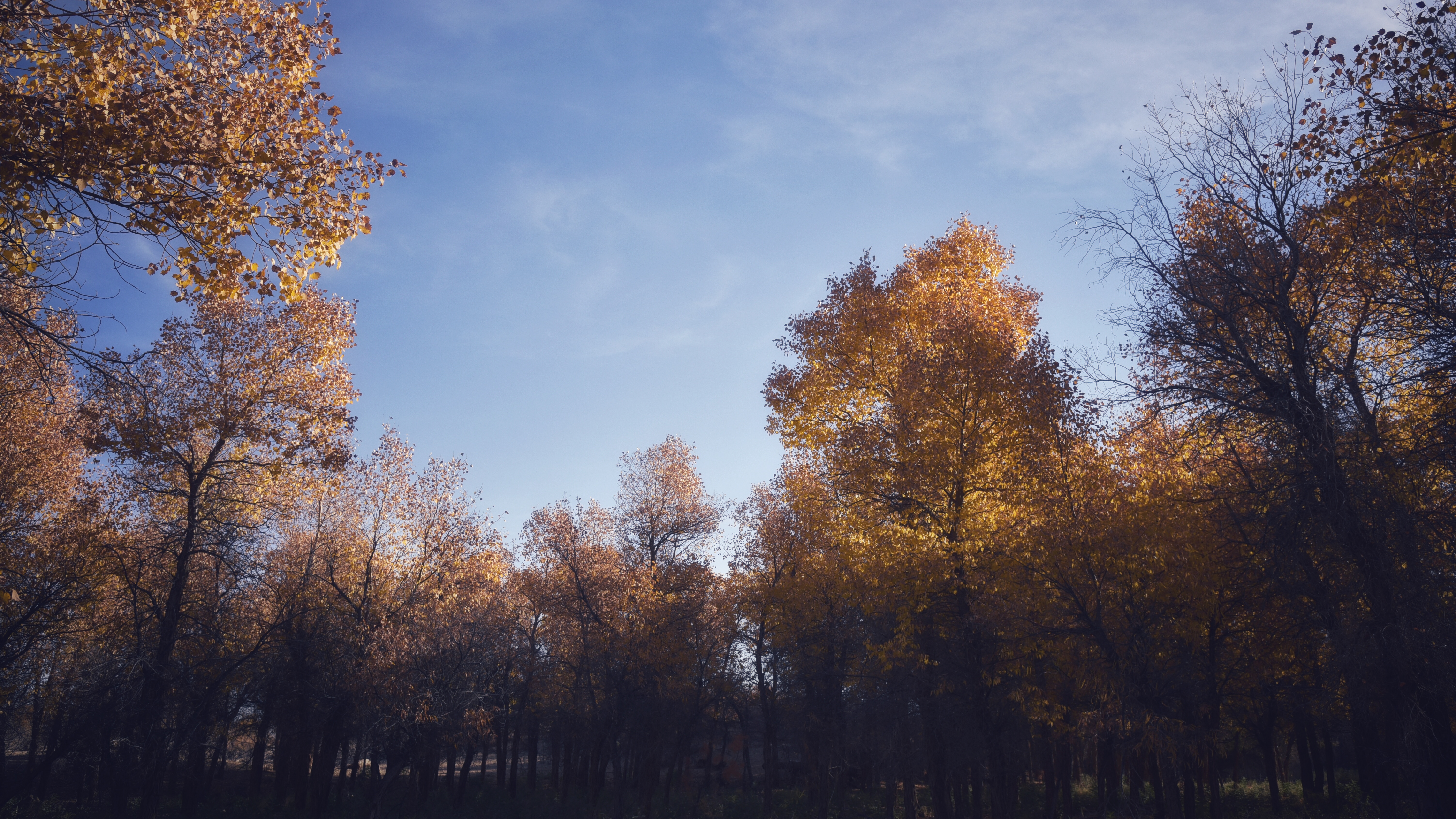 自然沉不住气,已经开始大面积落叶,但是还有个别的胡杨,就独立的绽放着金黄色的,在一众树林中卓尔不凡