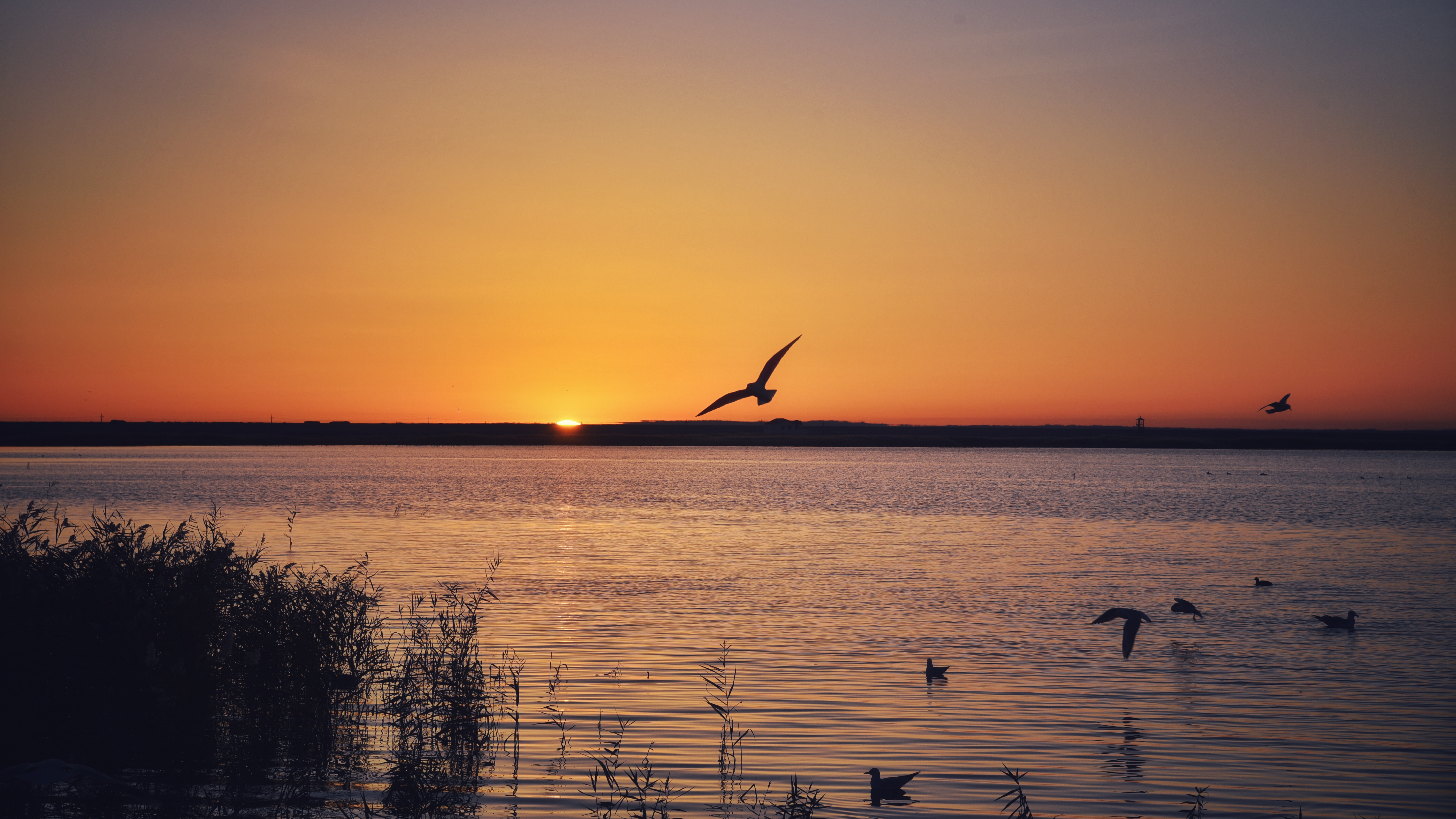 之前看着还都是剪影的水鸟,逐渐开始了低空盘旋,梳妆打扮