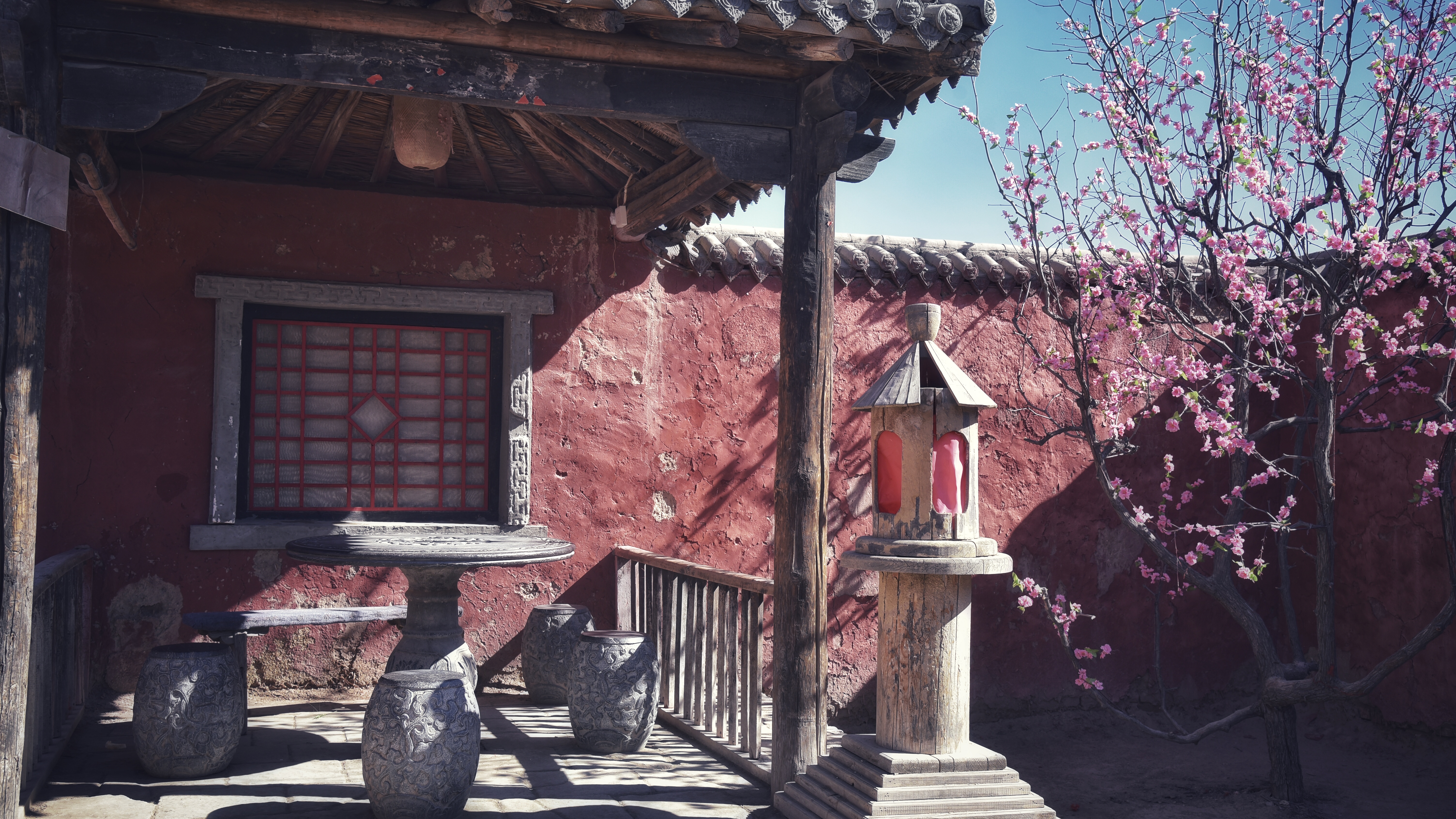 穿过月亮门看到的便是城中的所有景色,一个西北的小镇子就跃然纸上
