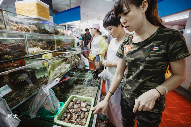 海鲜市场有很多发小卡片拉客的,为了避免骚扰可以现在海鲜市场附近的新民街找海鲜加工店的小姐姐带着去买海鲜,等会儿到她家加工吃饭就行。这样一来可以避免拉客的骚扰,二来有本地人砍价,肯定比自己去买省钱啦。
