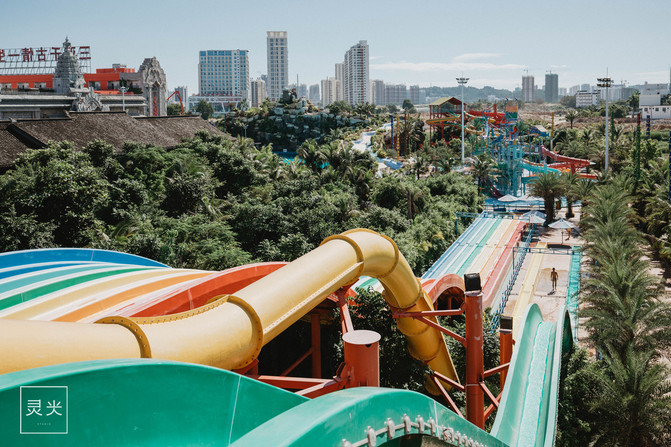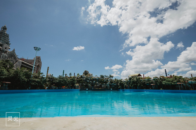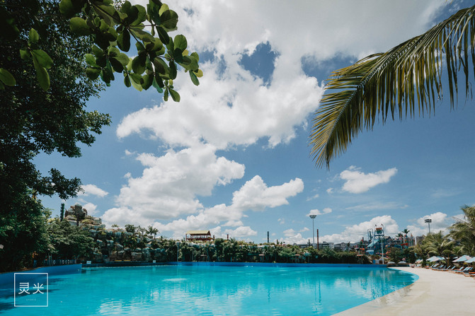三亚的天总是那么蓝,公园内还有运用世界最先进的造浪设备的造浪池,可以制造出浪花拍击,让游客领略海滩一样的清凉和舒适。