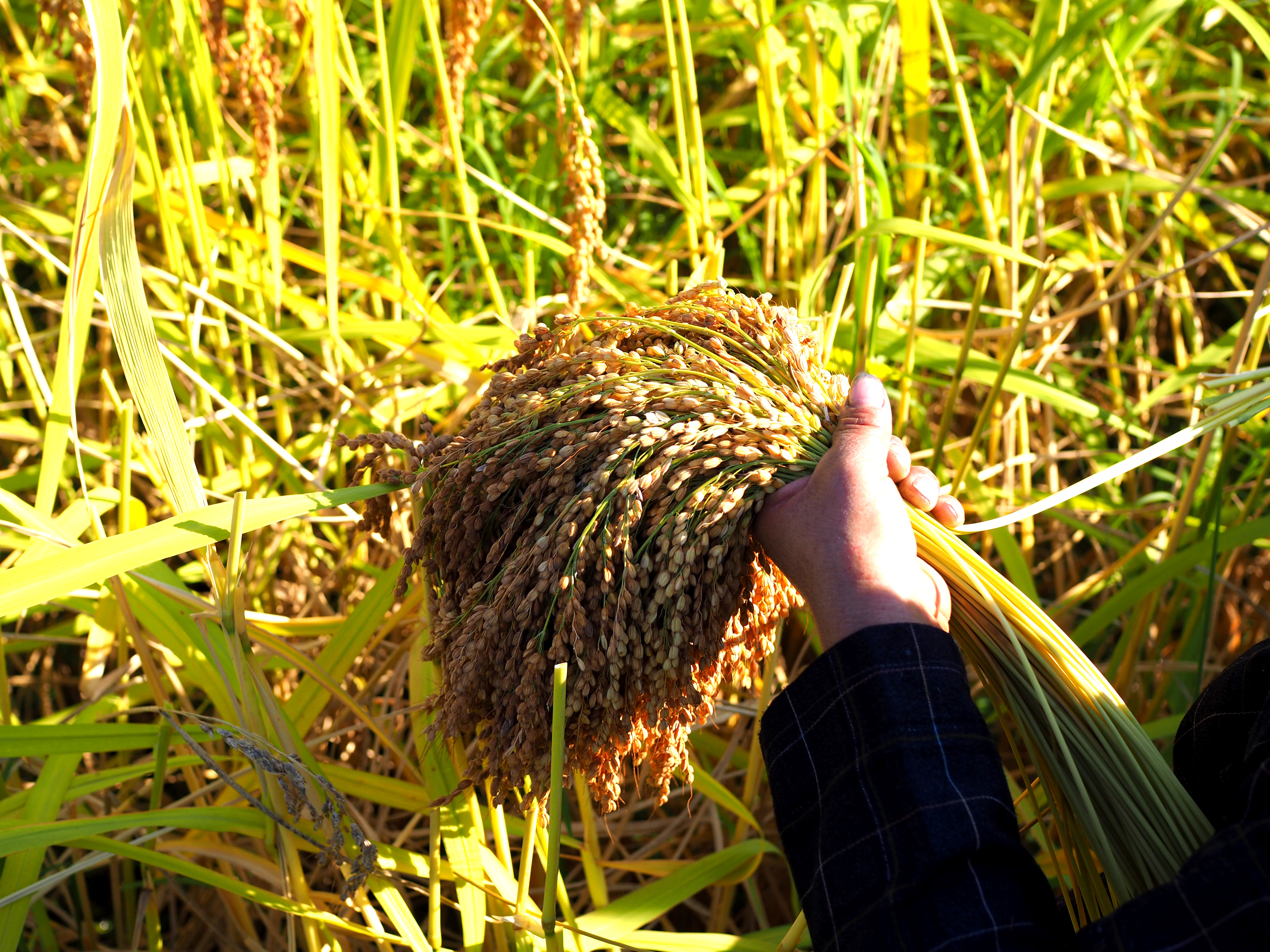 田间遇到阿嬷们正在收割水稻