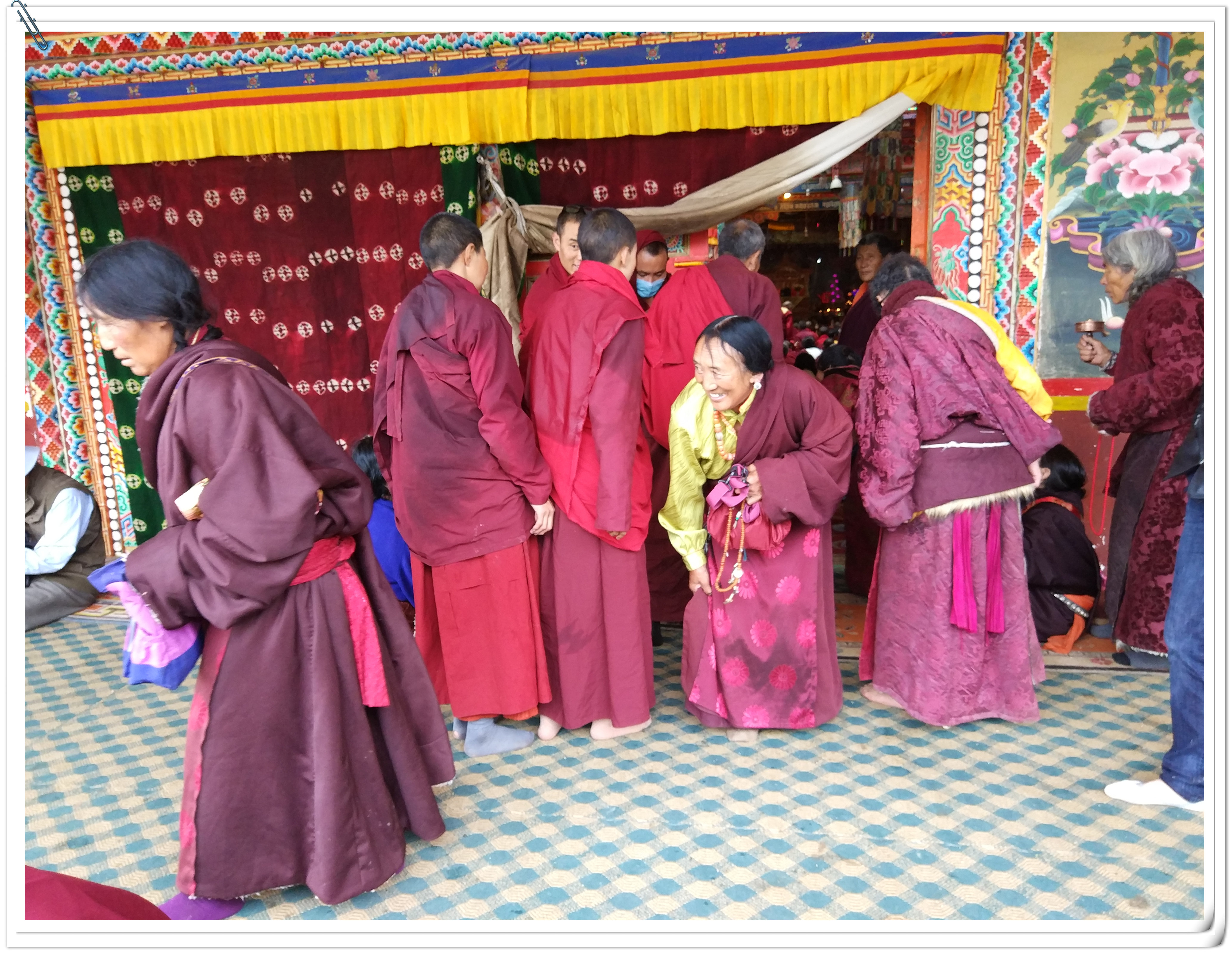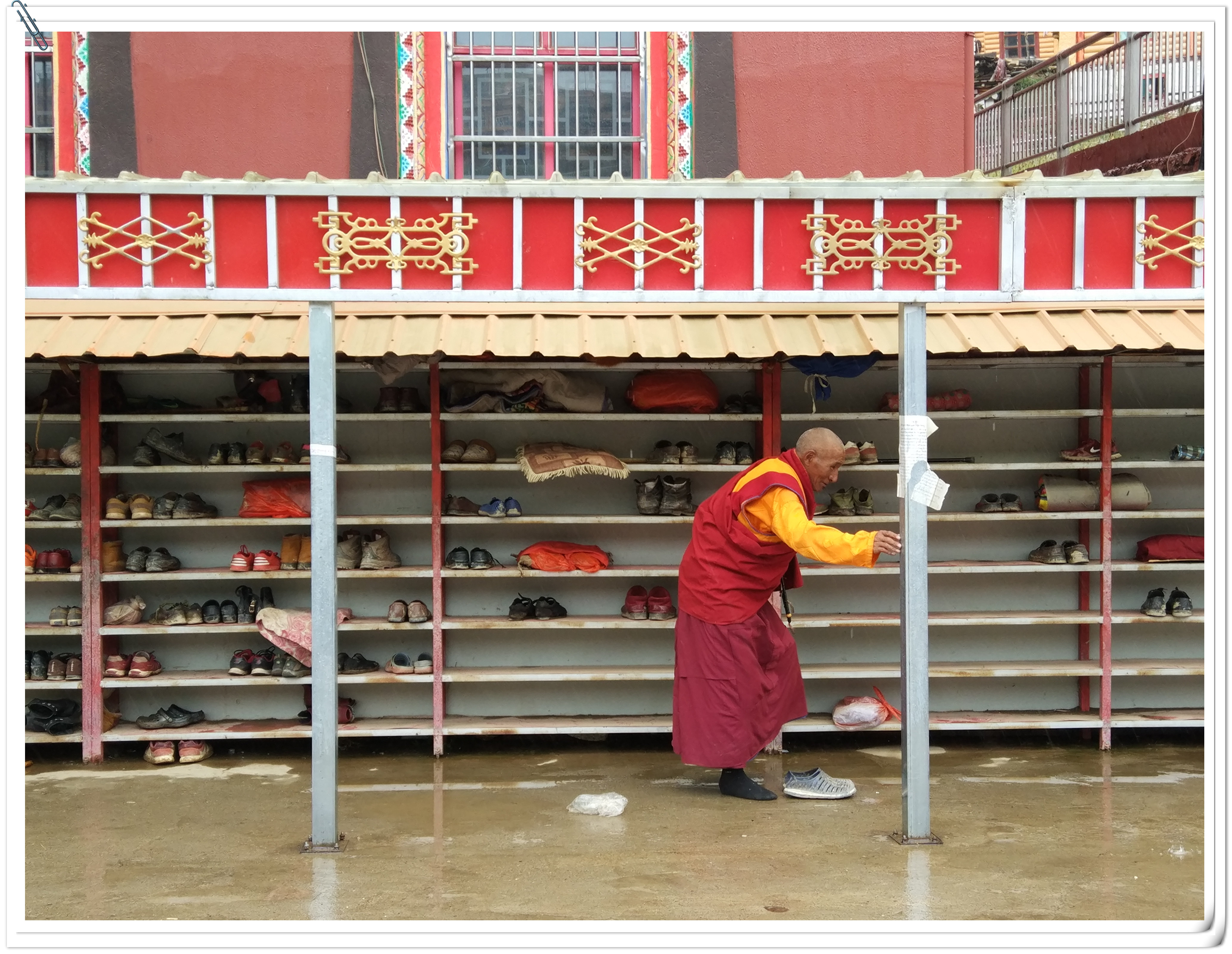 天空下着雨,时而大时而小,这不能阻挡我们这些红尘中人以及僧侣觉姆们前行的脚步。对面走来的觉姆们三五成群,有的年龄尚小,有的面容清瘦,也有的画部棱角分明,很是好看。当我们彼此四目相对时,他们那深邃的眼眸大胆的赤果果的直视我,以至于我竟然心跳加速,慌乱的低下头,不敢再对视。