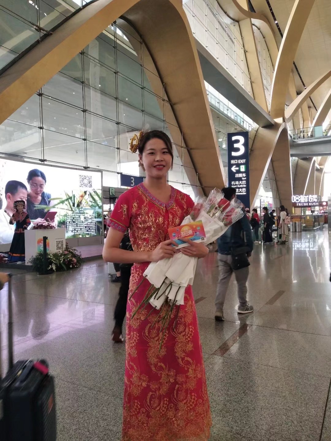 云南“彩云之南““七彩云南”,另一说法是因位于“云岭之南”而得名。刚下飞机就有穿着民族服饰的漂亮小姐姐送花给我。虽然天乌蒙蒙还下着雨但心情瞬间变得美美哒。