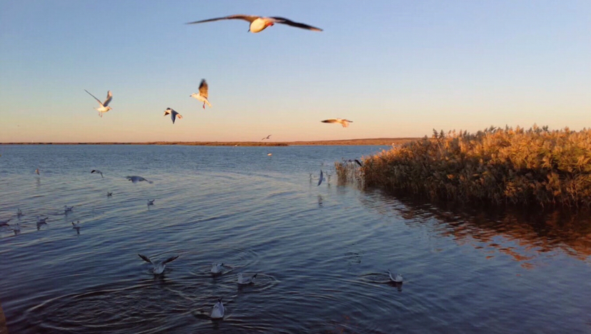 但是,也许海鸥们也不会知道,所有来到这里看到这些海鸥以及这里一片片在晨曦中摇曳的芦苇,和日出时金灿灿的阳光透过片片芦苇洒在蓝色湖面上那美妙绝伦的景象时,那种惊喜那份感动和震撼与喜悦是别处景点给予不了的呢!