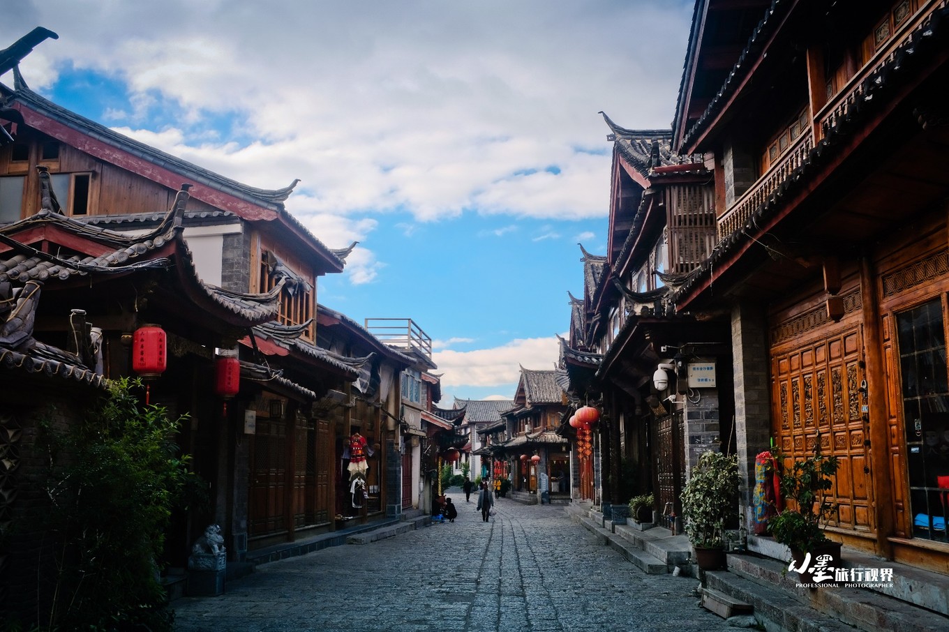 进入古城的那天,天空飘落的细雨如酥油般莹润。踏上厚厚的青石板路,滴答滴答的雨声如同时针敲打着叶落,路旁河道里清澈见底的山泉涓涓流过,四周纳西风格的店铺和酒吧鳞次栉比,宋元遗韵、明清流风和纳西风情氤氲缭绕着青瓦红墙的房舍。