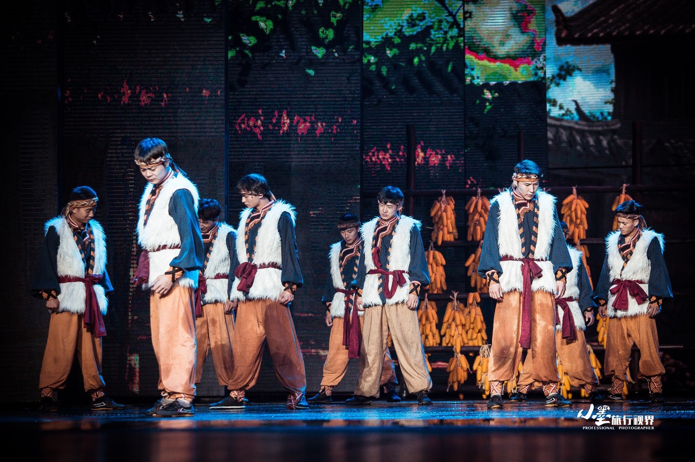人们还未从刚才的伤感中走出来,欢快的音乐突然响起,舞台上已经是欢乐一片。最后一幕“寻找香巴拉”正在上演,演员们身着藏服尽情的唱歌跳舞,没有烦恼与忧伤,远处巍峨的雪山默默地欣赏着他们欢愉的歌舞,这里就是他们的世外桃源。