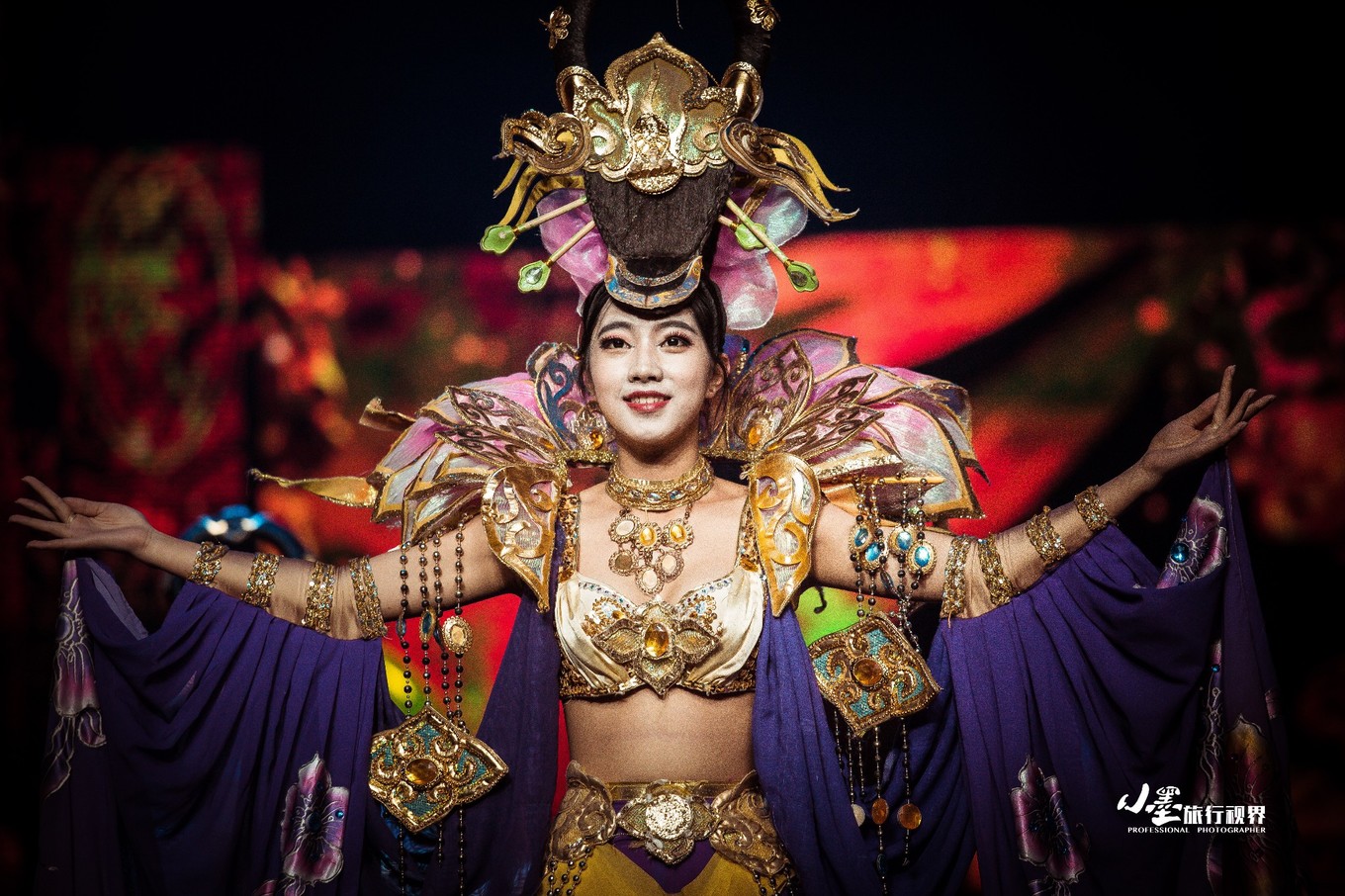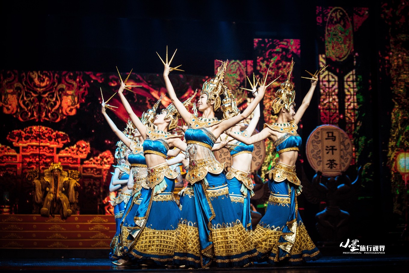 开场两排身着华丽服饰的美女从观众席两侧缓缓入台,台上与台下融为一体,整个舞台美艳奢华至极,让人大开眼界。舞台的灯光、音乐、氛围以及演员们身穿的华美服饰无一不在展现着木府鼎盛时期的辉煌。各民族以及周边国家纷纷来朝,各国风情舞蹈轮番上演。气势恢宏,场面震撼,不断给观众带来出乎意料的惊喜,让人直呼过瘾!《丽江千古情》的奢华震撼果然名不虚传!