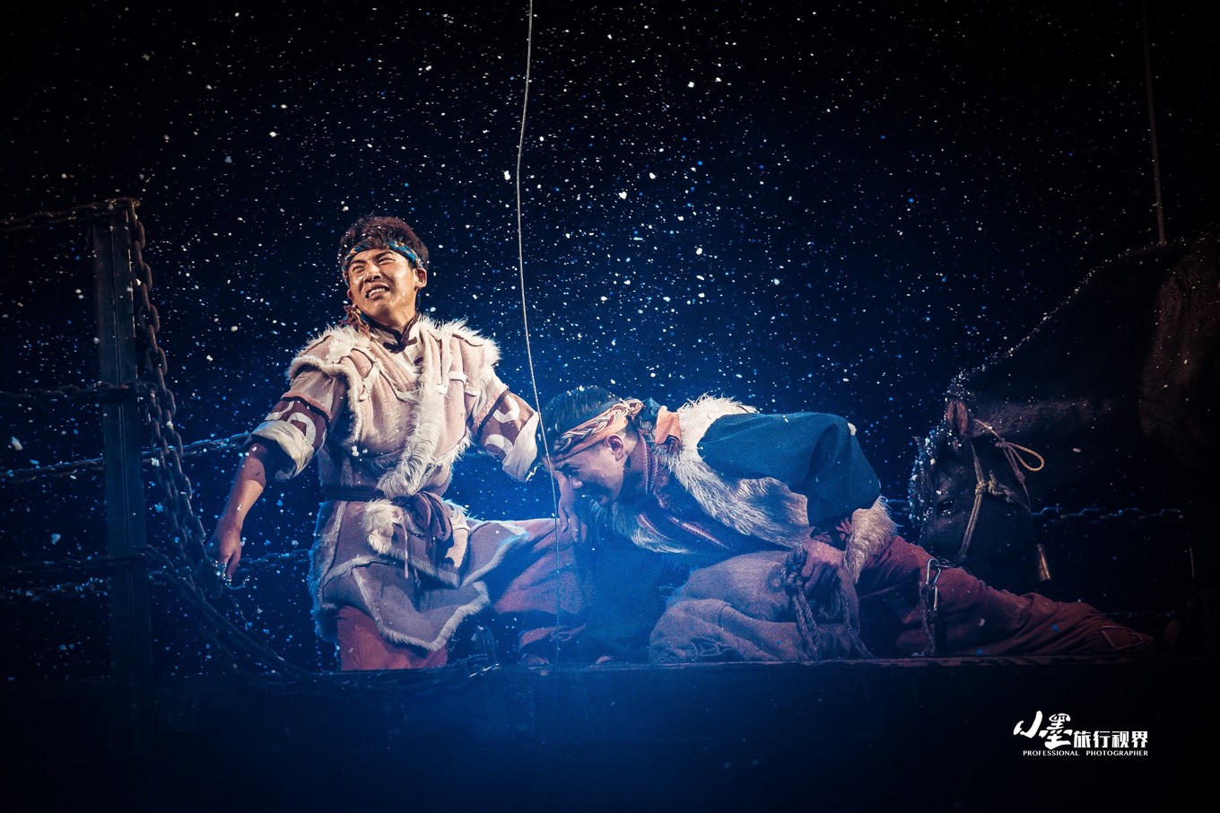 一场好的演出,华丽的服饰和绚丽的场景只是外表,真挚的感情才是灵魂。在观众期待的目光中,藏族小伙阿布达与纳西族姑娘嘎吉米的千古绝恋缓缓拉开了帷幕。