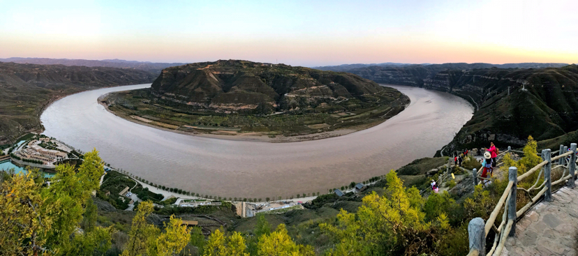 清水湾,黄河蛇曲国家地质公园的其中一部分,其弯度可达305度,河对岸则是山西,下面是静静流淌的黄河。最深刻的印象是只能用全景模式拍全,广角不够广只能这样了