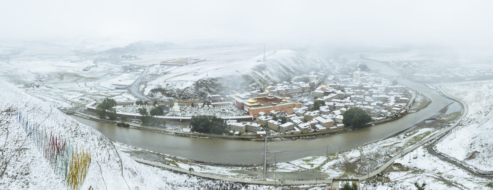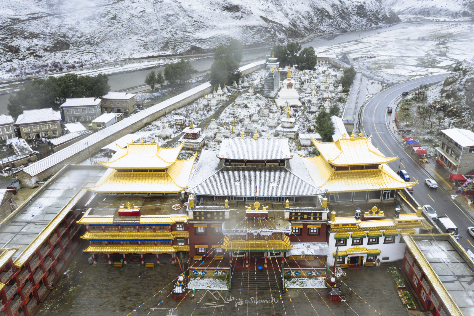 入住高原的第一天最好别洗澡,会使身体血管扩张,加重神经系统缺氧。但那天我感觉自己还行,就没在意直接洗澡然后睡觉了。前半夜也睡得挺好,到了凌晨5点钟头痛醒了......果然还是高反了,不过这算比较轻微的正常反应。第2天起来发现塔公也下雪了,变成白茫茫的一片,一下子从秋天进入了冬天。