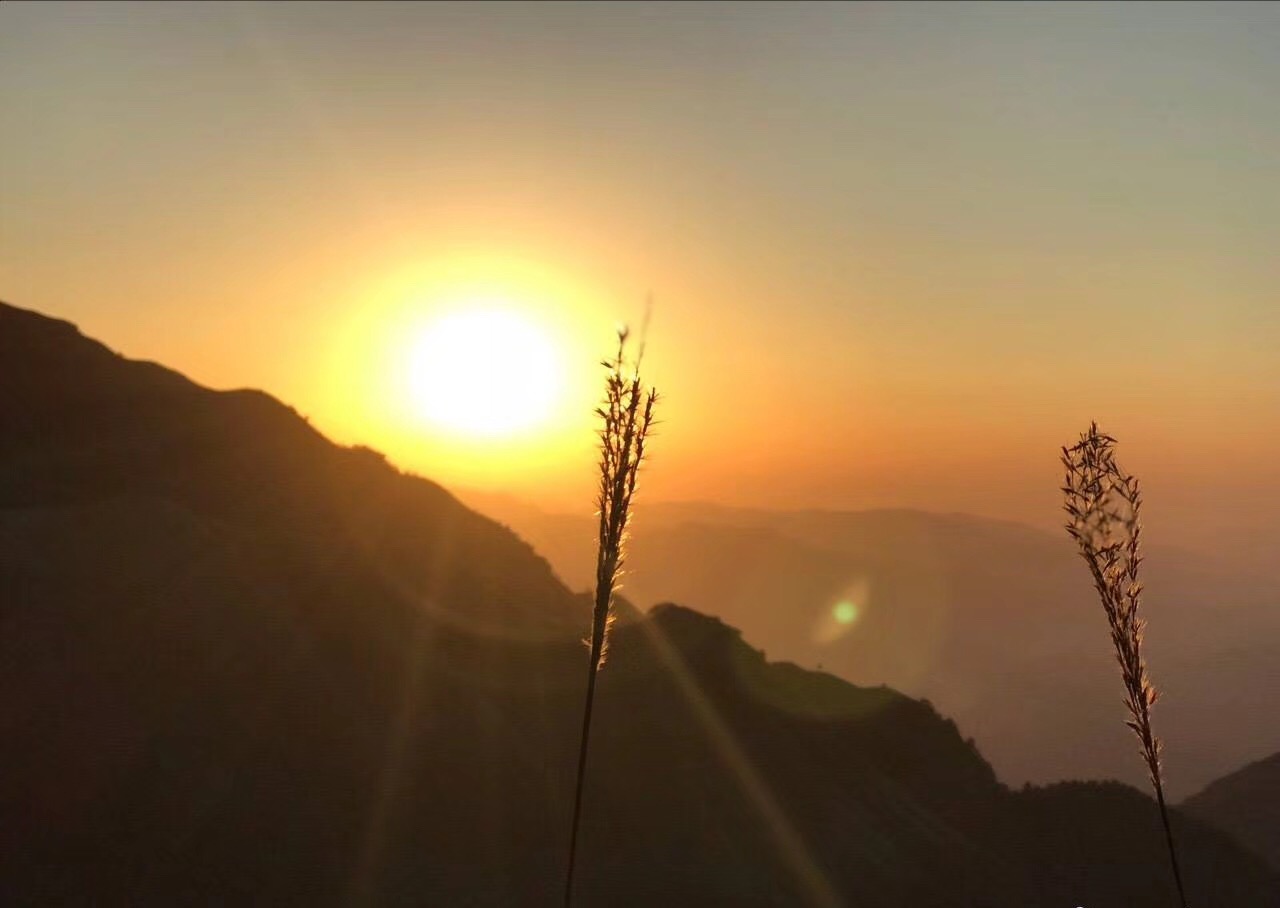 座座山峦都被镀上一层温馨的暖黄色,美好地凝聚,勾勒出只属于这里的宁静安详,时光似乎走得很慢。