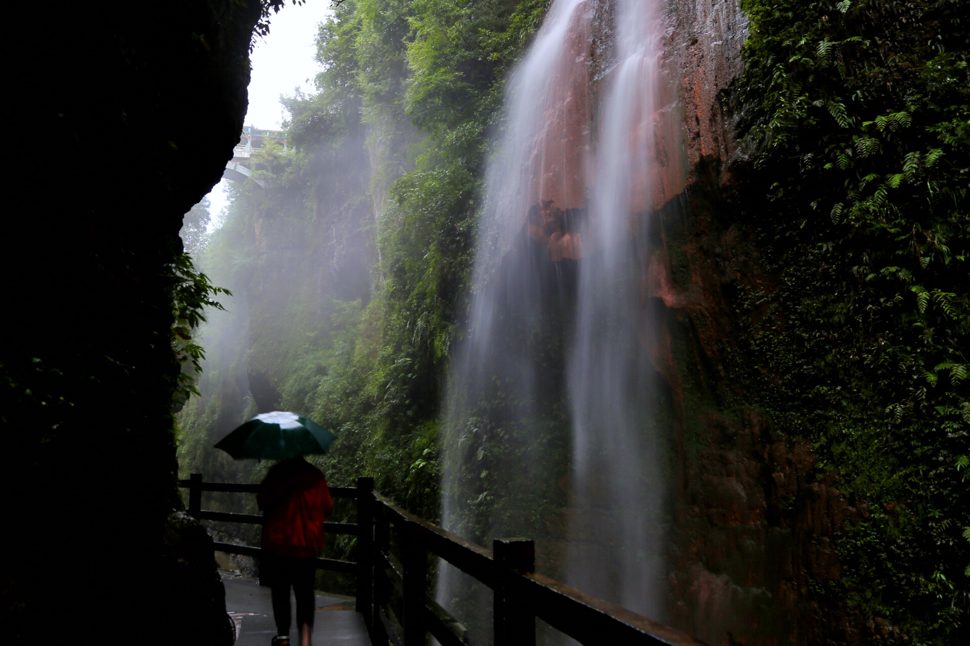 因为是阴雨天气,洞口的云雾缭绕增添的不少的神秘,再加上偌大一个景区就我们一个团,如果不小心落在大部队后面,会有一种前不见古人后不见来着的恐慌感。