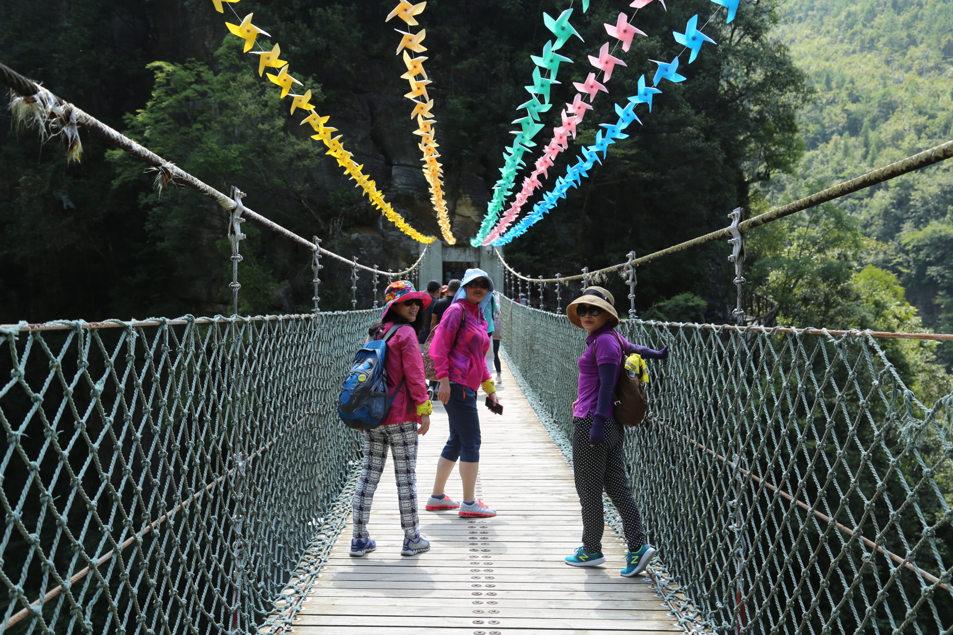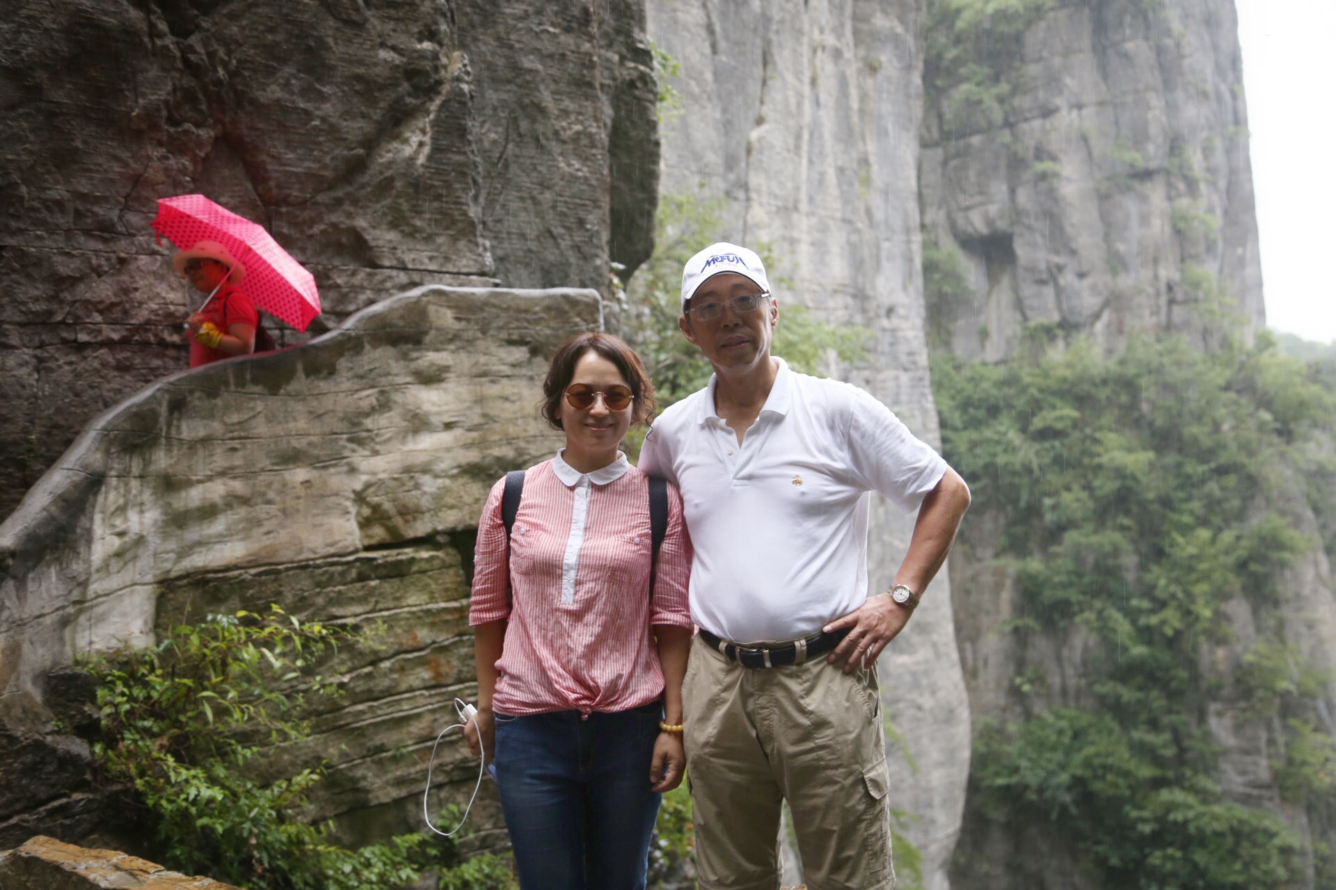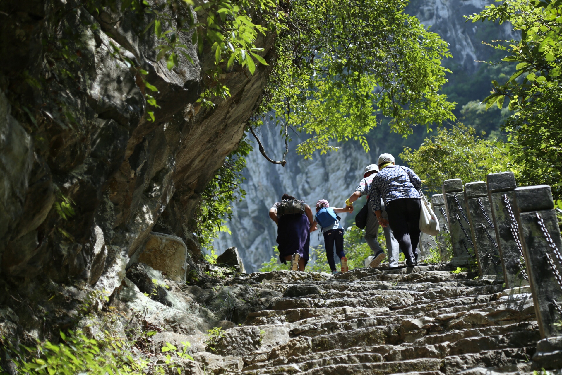 D2 石门河大峡谷,早上8:30准时从土家女儿城出发,约一个半小时候到达石门河大峡谷。石门河峡谷景区总里程约6公里,整个栈道悬挂与悬崖峭壁之间,也许是这个地方知道的人还不怎么多,或者也可能是因为这里过了暑假旺季,石门河的游客不是很多,峭壁的栈道上基本只有我们的人。