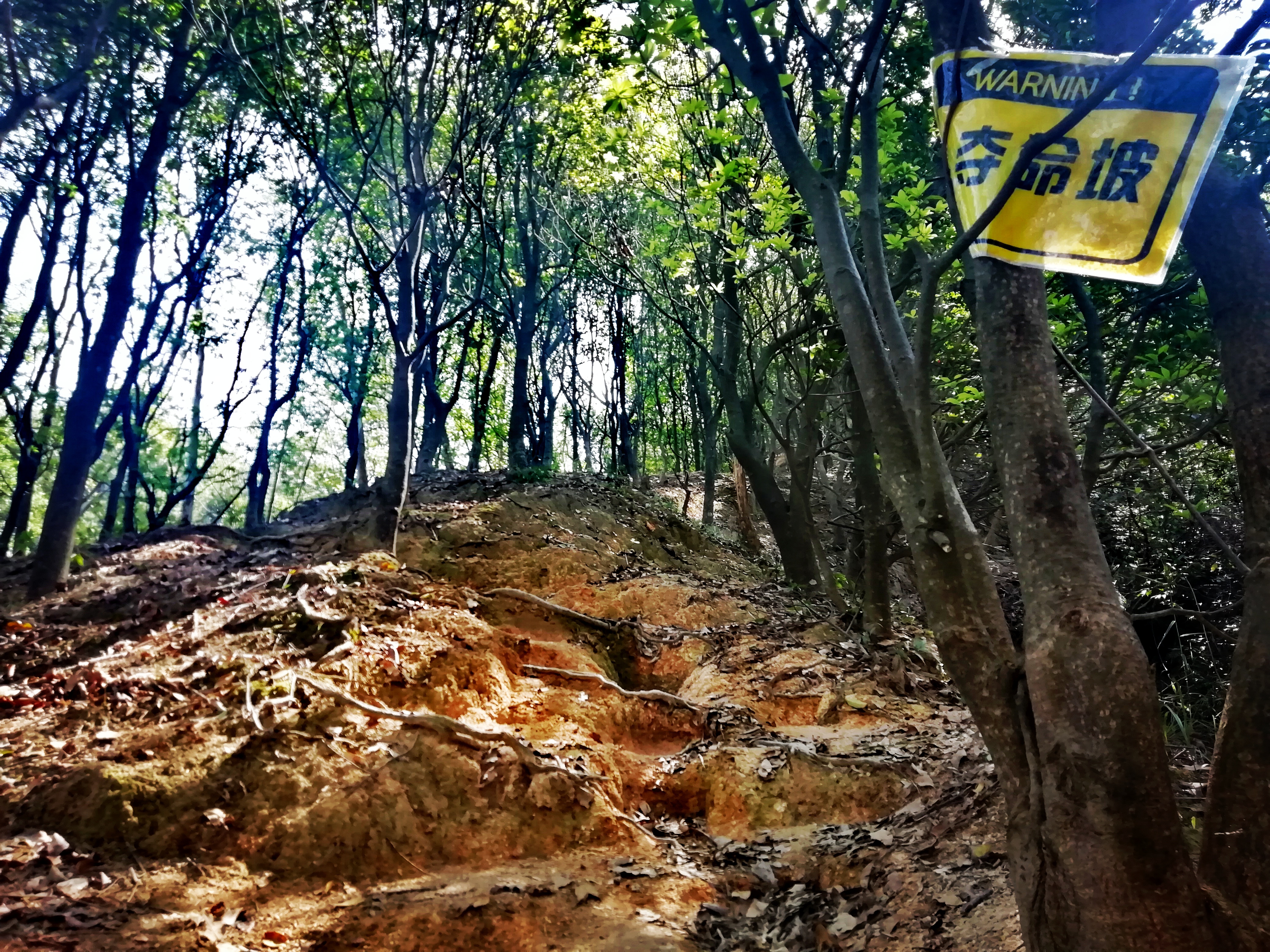 由于在公路旁,车来车往,无位置站人,只能一开始就爬山,爬了约10来分钟,才到达一个较开阔的地方,在此再做热身,防止抽筋和扭伤!