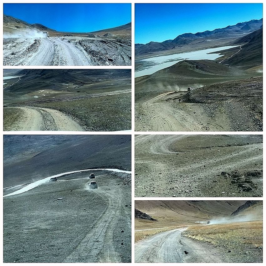 这一路几乎都是无人地带,午餐便又以干粮裹腹。我们车驶入S205省道,之前的路就是曾经车开过的车辙路,高德地图中也找不到它。现在虽驶入省道,有明显的土路,但路况却又刷新了前两天所走一起一伏所带来的颠簸感。爬陡坡、冲下坡;缓上坡又陡下坡;走沙石路、跑在乱石浮土浮沙搓板路上……。怎么说那感受呢,总之,幸亏我从不晕车,如果平时会晕车的人,先不要说高反能否抗得住,就这一路上的颠簸也要将五脏六腑给顛的七晕八素的!