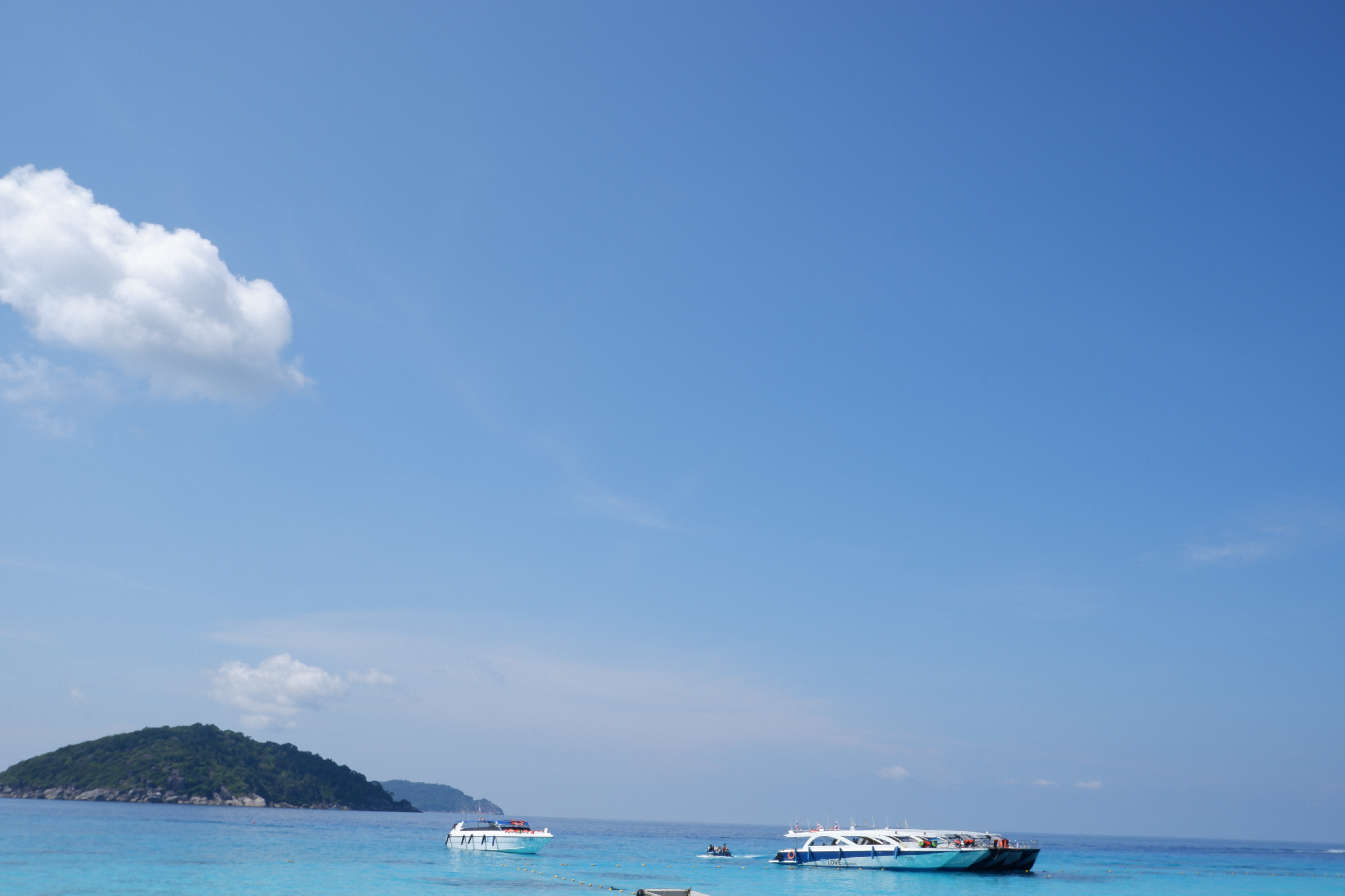 幸运的是我们赶上了斯米兰的末班车一睹她的娇美容颜,海边细软的白沙使得海水产生渐变色,走在海滩边心随那浅浅的蓝起起伏伏,坐在岛上的礁石眺望海的深蓝沉醉之中。时光啊!请在一刻定格吧!