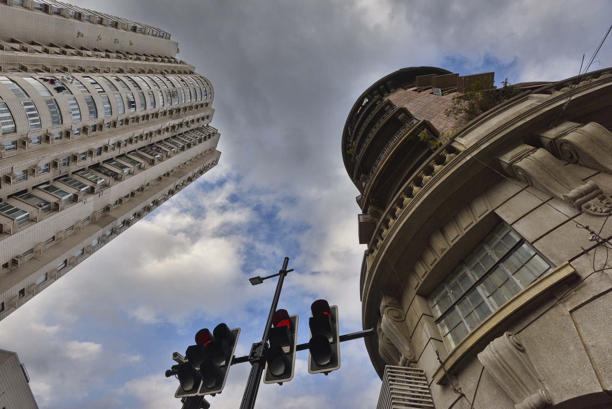 两幢建筑,一新一旧,一高一低,相得益彰,见证了上海的沧桑变化。