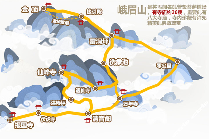 🌟附上 峨眉山 主要景点位置图,做攻略的时候在网上保存的,侵删。
