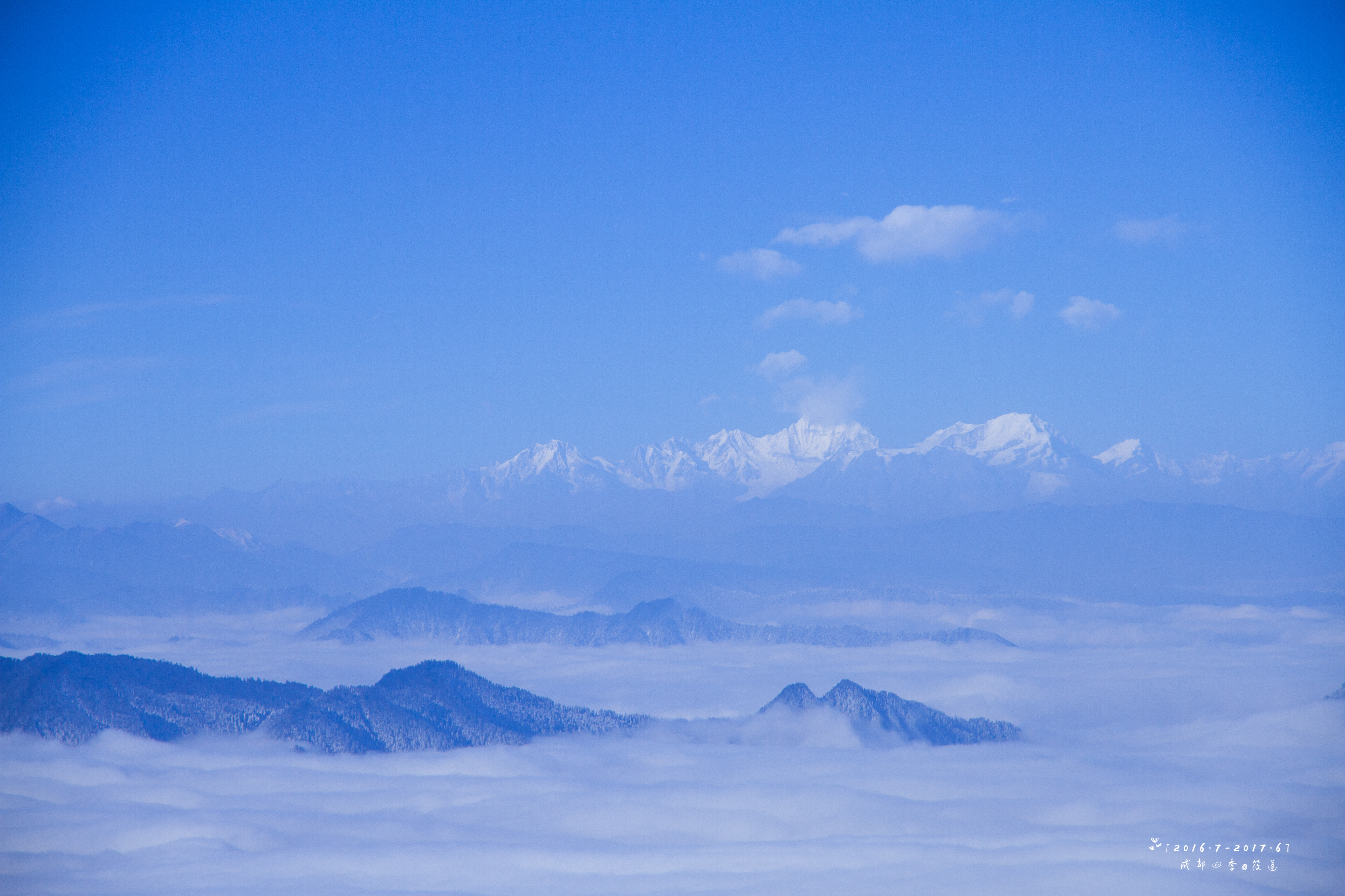 关于峨眉的记忆是无法忘却的,我于新年的第一天摸着黑,踩着雪登上了晴空万里的金顶,一心虔诚的仰望闪闪发光的金佛,眺望远方云海中若隐若现的 贡嘎 雪山。