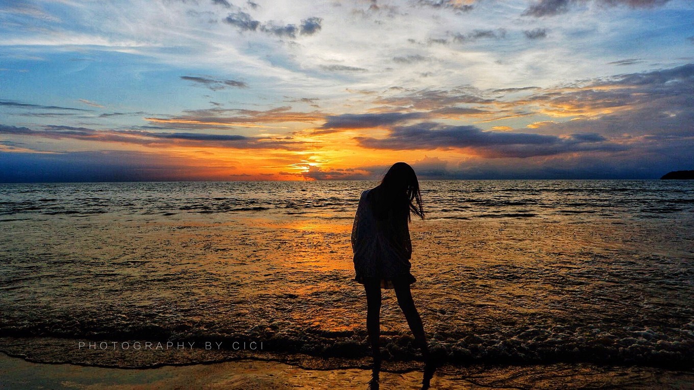 丹绒亚路的沙滩很细,光脚踩在上面,如踩在面粉上一般舒服。海浪声声,夕阳把光芒毫无保留地展现于前,涂抹着舒展的云,层层叠叠的色彩,如油画般展现。