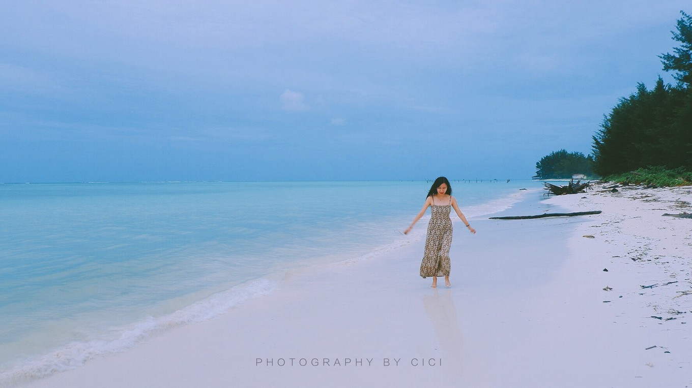 趁着人少,在沙滩上拍了拍照,这里的沙子比丹绒亚路海滩的还要细软。
