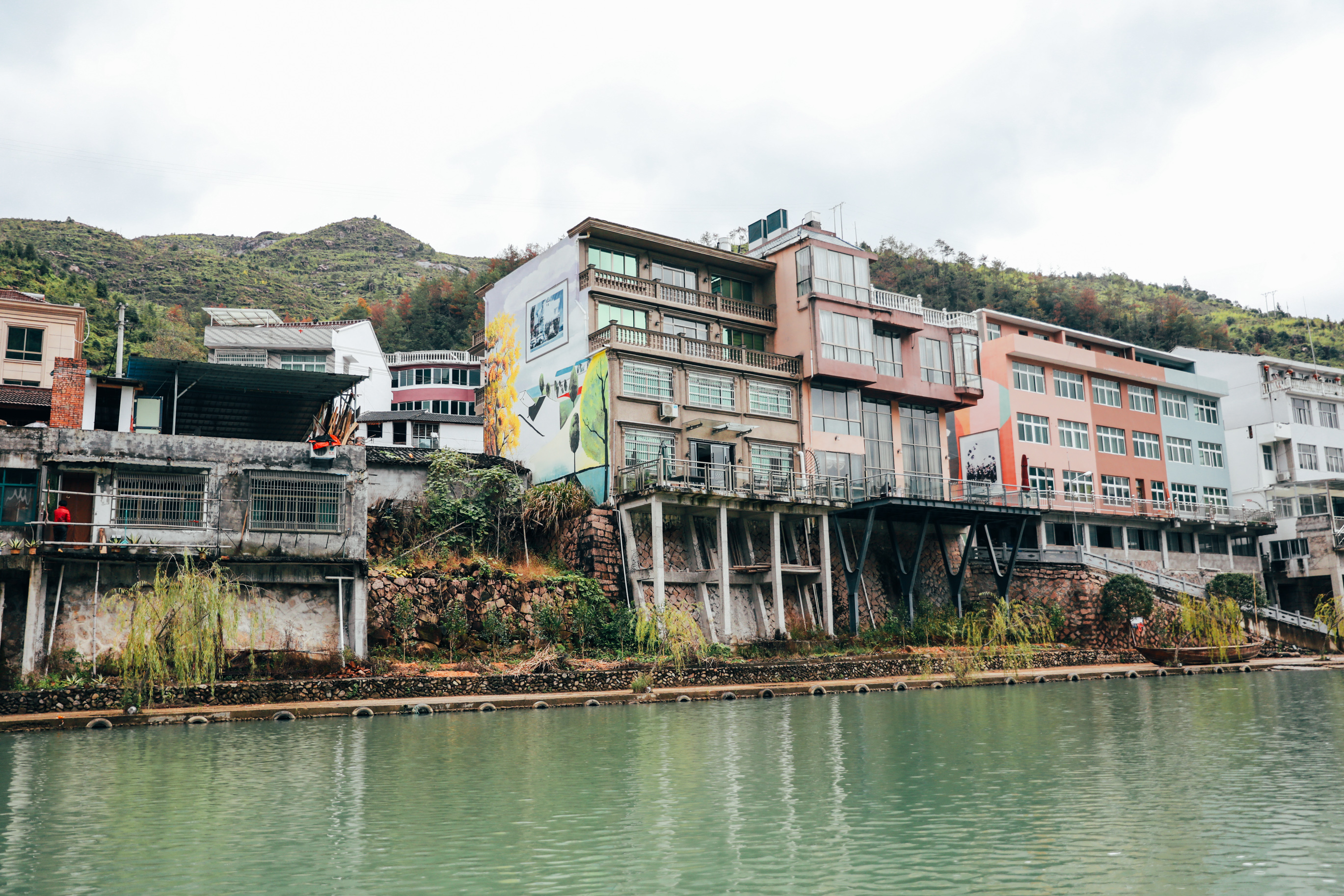 坐在船上,可以欣赏两岸的美景,岸边的房子被涂成了五颜六色,据说是请了中国美院的老师们设计的,更增添了一波生气。