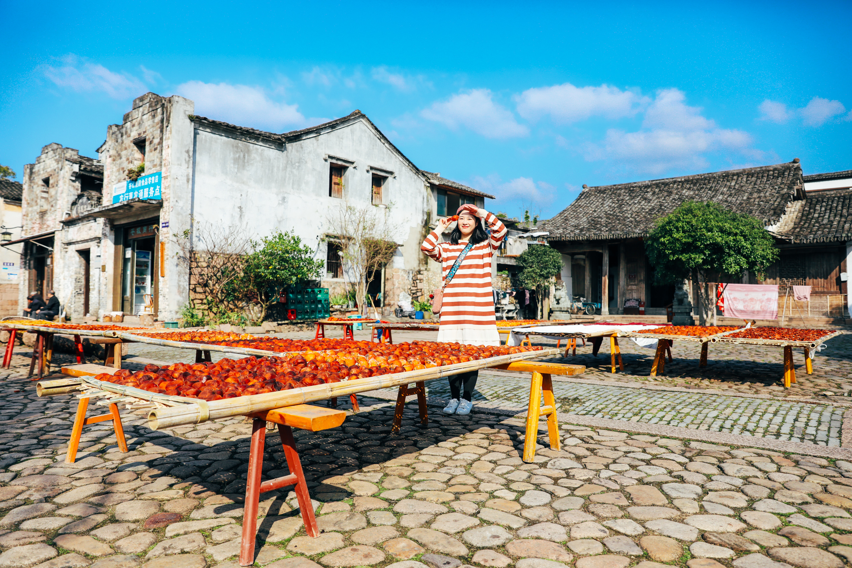 蓝天、古村、红柿子,一副美好的画面呈现在了眼前。
