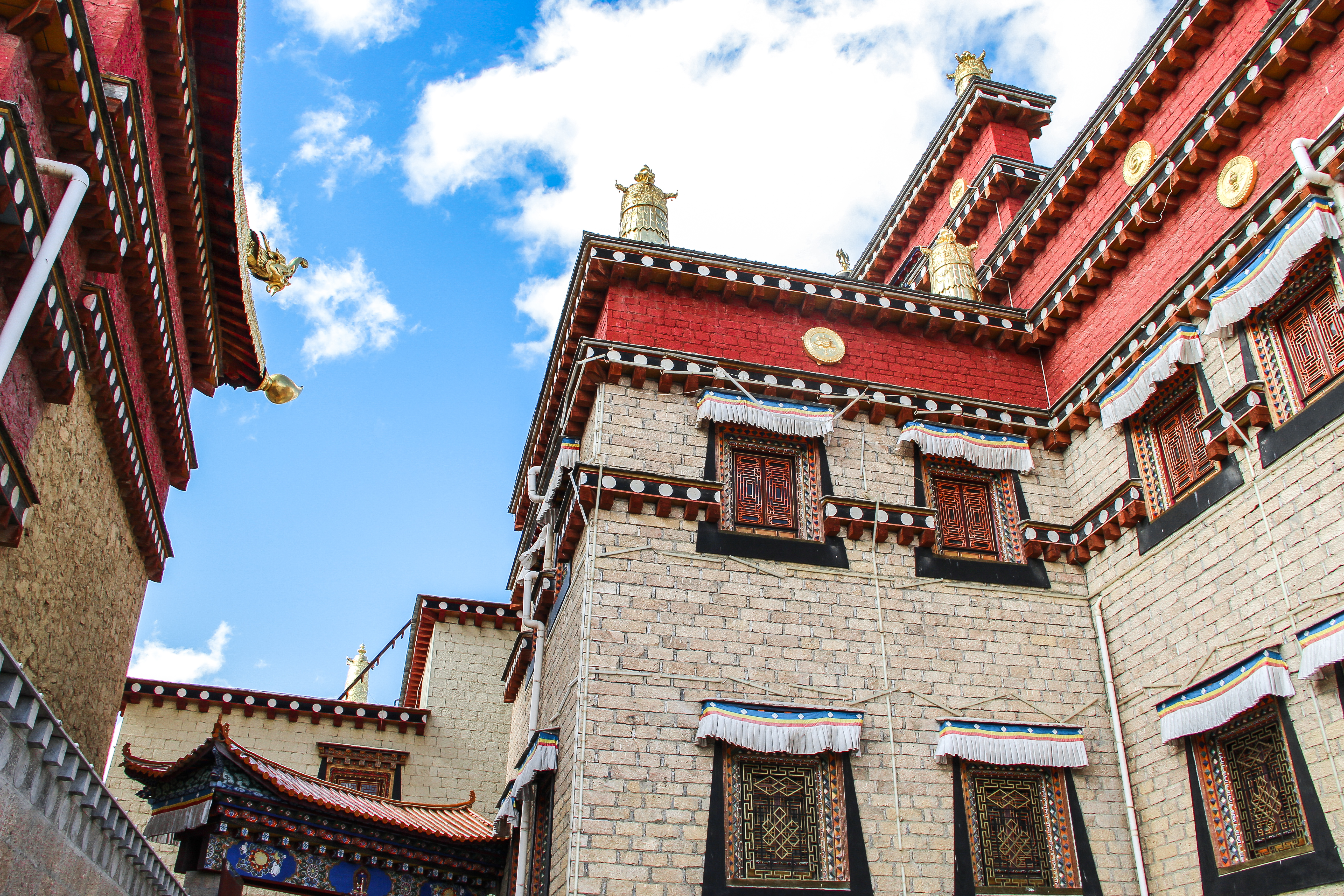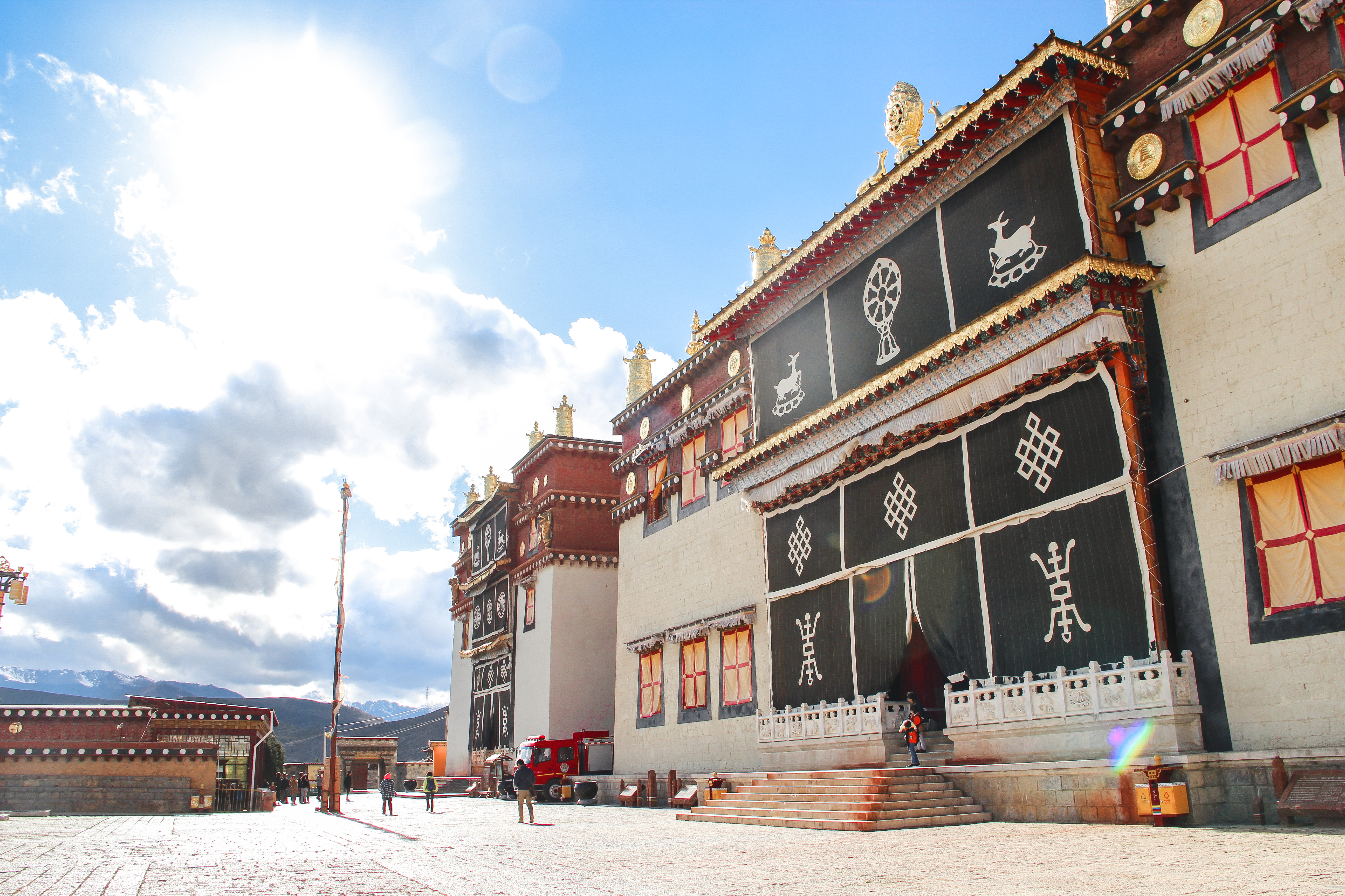 这里是在松赞林寺的最里面,围墙围起来了的,有大门可以进去,没什么人,于是久自拍起来,在这里被小师兄门热情围观