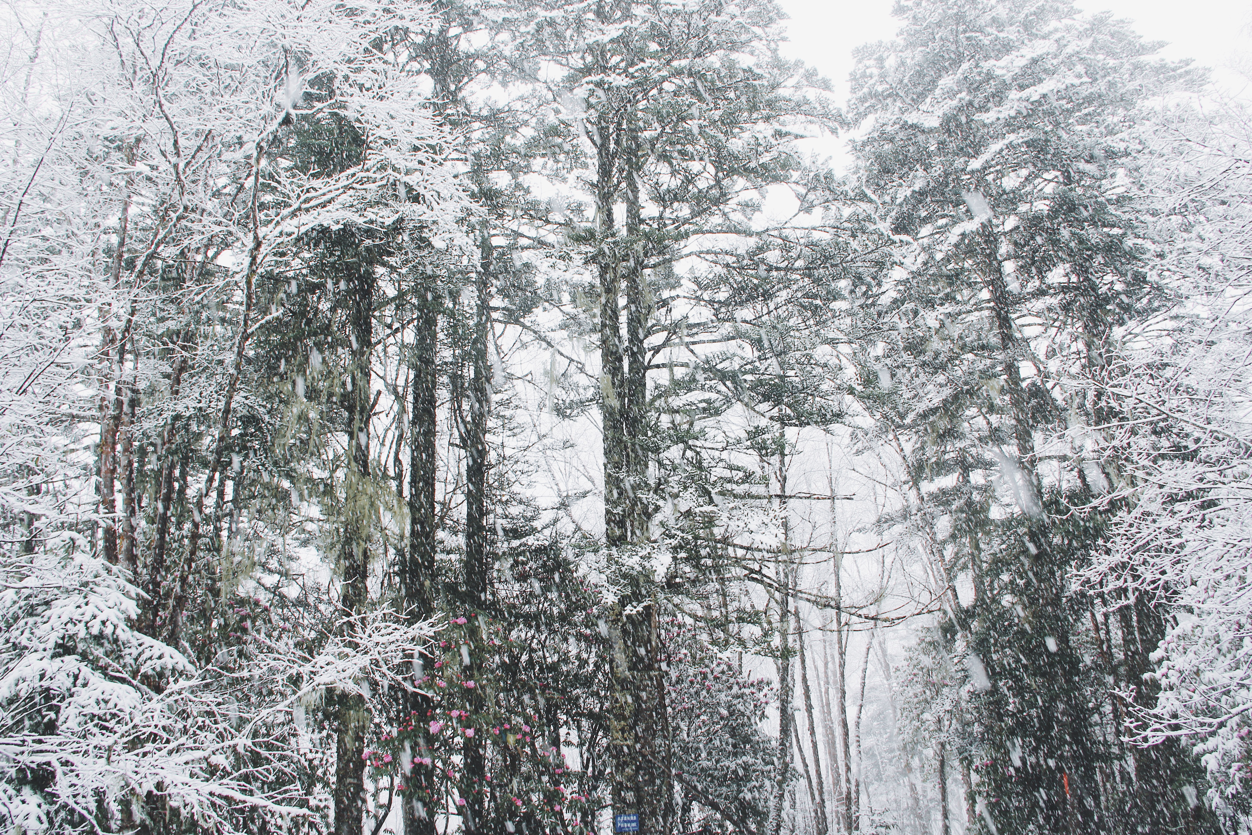进入森林没多久就开始下雪,越下越大,路特别的不好走,全是雪,很滑,有小伙伴滑倒了,我也滑倒过