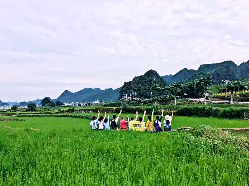 万峰林,我个人是最喜欢这个地方了。走在景区,看一看当地人的生活,甚至和她们一起在田里劳作一番,别有趣味。傍晚,踩着自行车,就在纳灰村自由的穿梭,呼吸着自由的空气。约上几个小伙伴,来到当地的大榕树下,唱歌、聊天、浪哨。生活就是这样,有时候它越简单就越是显得美丽。