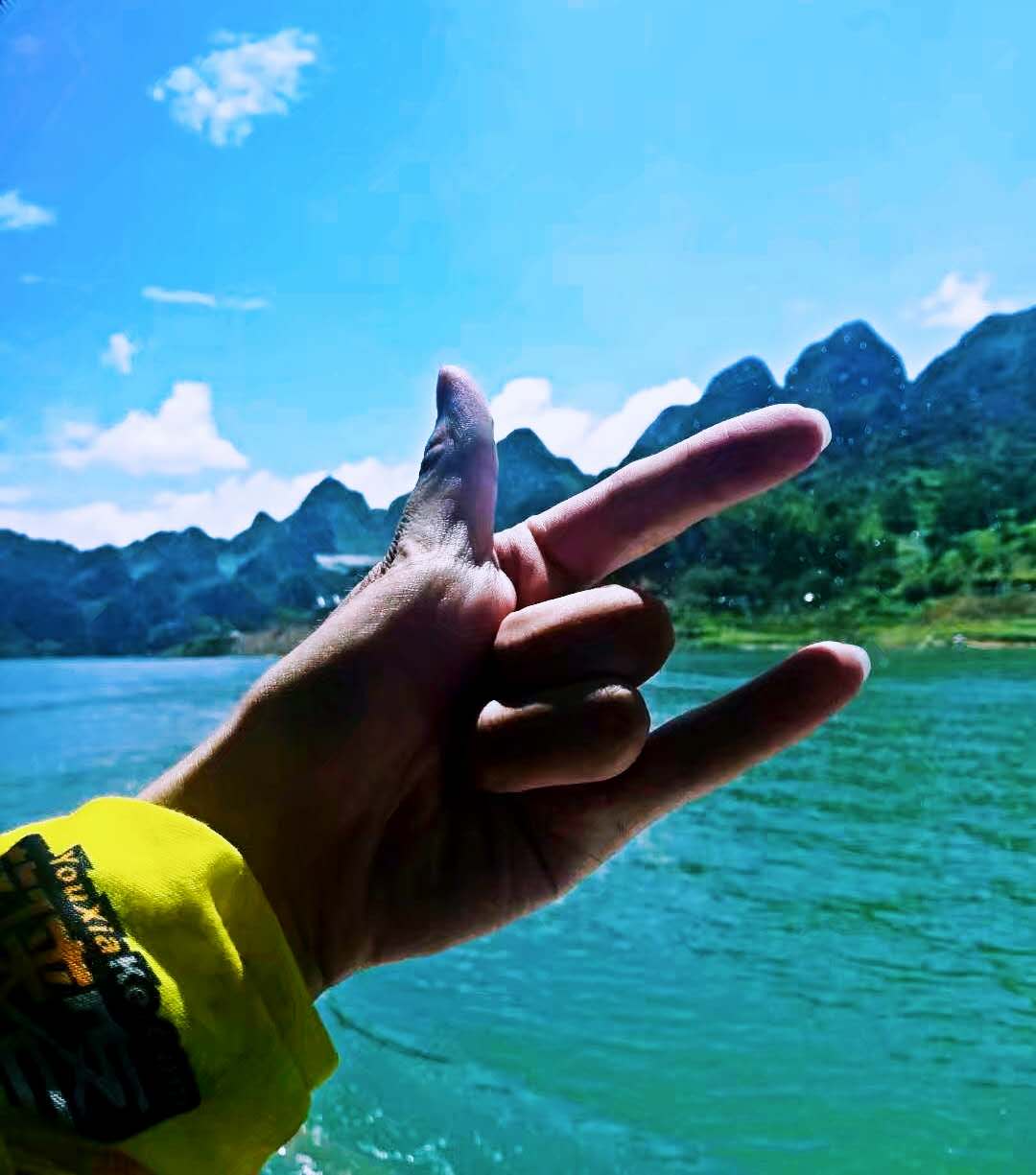 万峰湖,一个因修水电站而形成的人工湖。坐在游船上,两岸青山尽收眼底,湖水荡漾,清风和熙,大有“南风薰得游人醉”的感觉。
